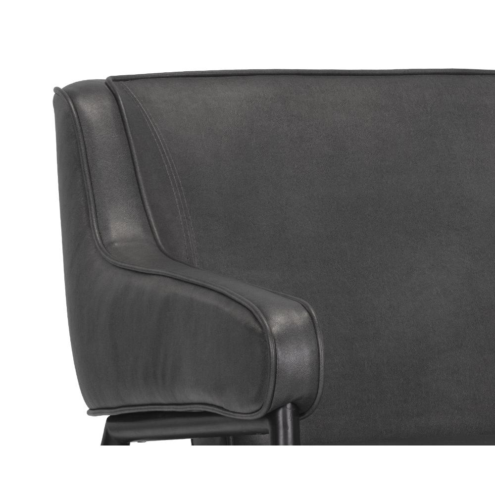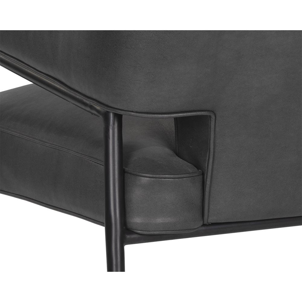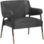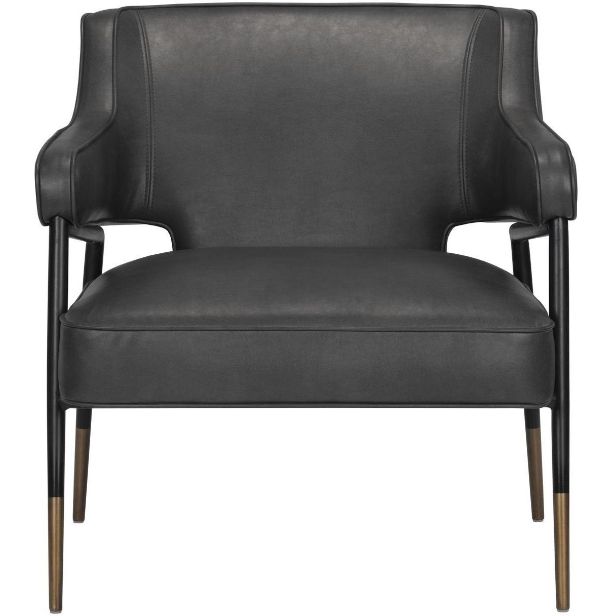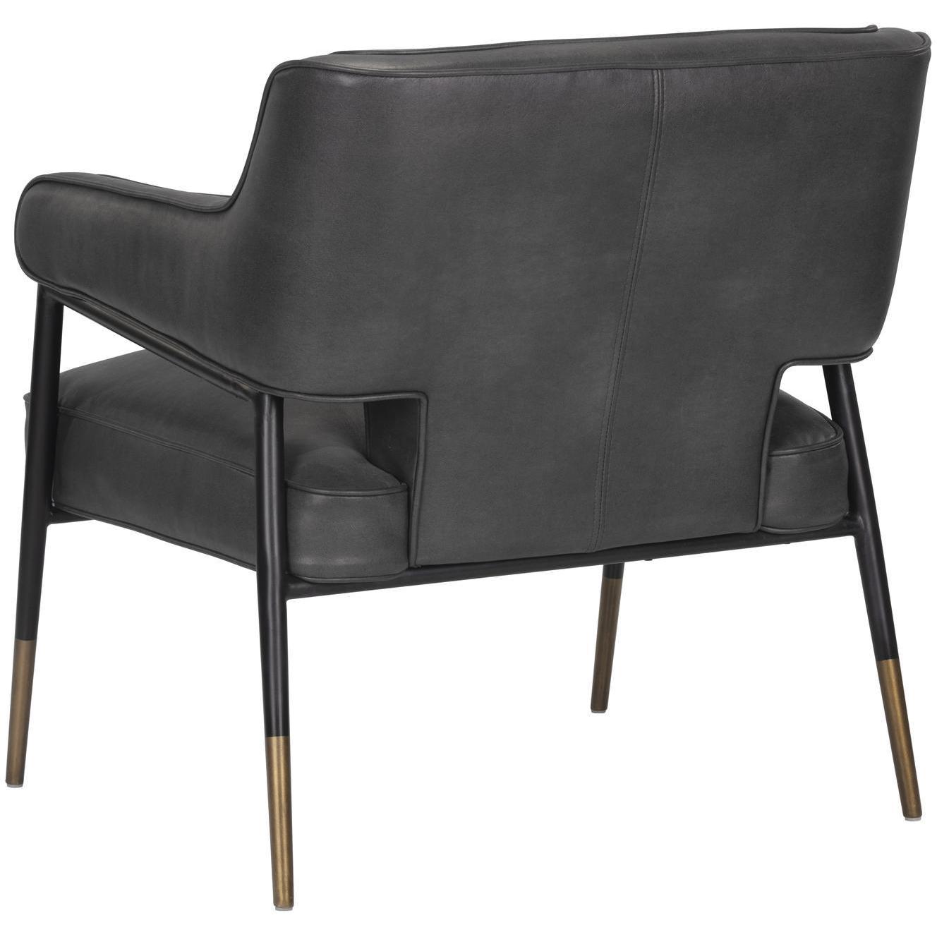 A mid-century inspired lounge chair that sits comfortably. Features a sculpted silhouette upholstered in bravo portabella faux leather. Piping, black steel legs, and gold foot caps complete the look. Handle With Care: This design has been crafted with faux leather. Faux leather is manufactured to reflect the natural characteristics of leather; as such, colour variations, markings, wrinkles, grooves, and light scratches are appreciated characteristics. No two pieces will be alike.