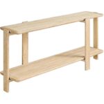 The Desert Console Table adds a touch of understated grandeur to any space. Its light, inviting Desert finish enhances the clean lines and open design, creating a visually appealing and functional piece.