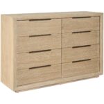 The Desert Eight Drawer Dresser combines contemporary style with generous storage. Its sleek silhouette and airy Desert finish complement any decor, while eight drawers provide ample space for clothing and accessories.