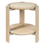 The Desert Side Table provides a chic and practical accent to any living space. Its light Desert finish complements the clean lines and two-tiered design, offering both style and functionality for your bedside or living room needs.