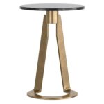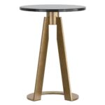 Gorgeous, marble-topped accent table. The thick and sturdy solid brass base is finished with a hammered look, giving a unique handcrafted feel. Perfect little accent piece in any room of the house. As a side table beside a sofa, as a unique night stand, in an ensuite bathroom by the freestanding tub, the possibilities are endless.