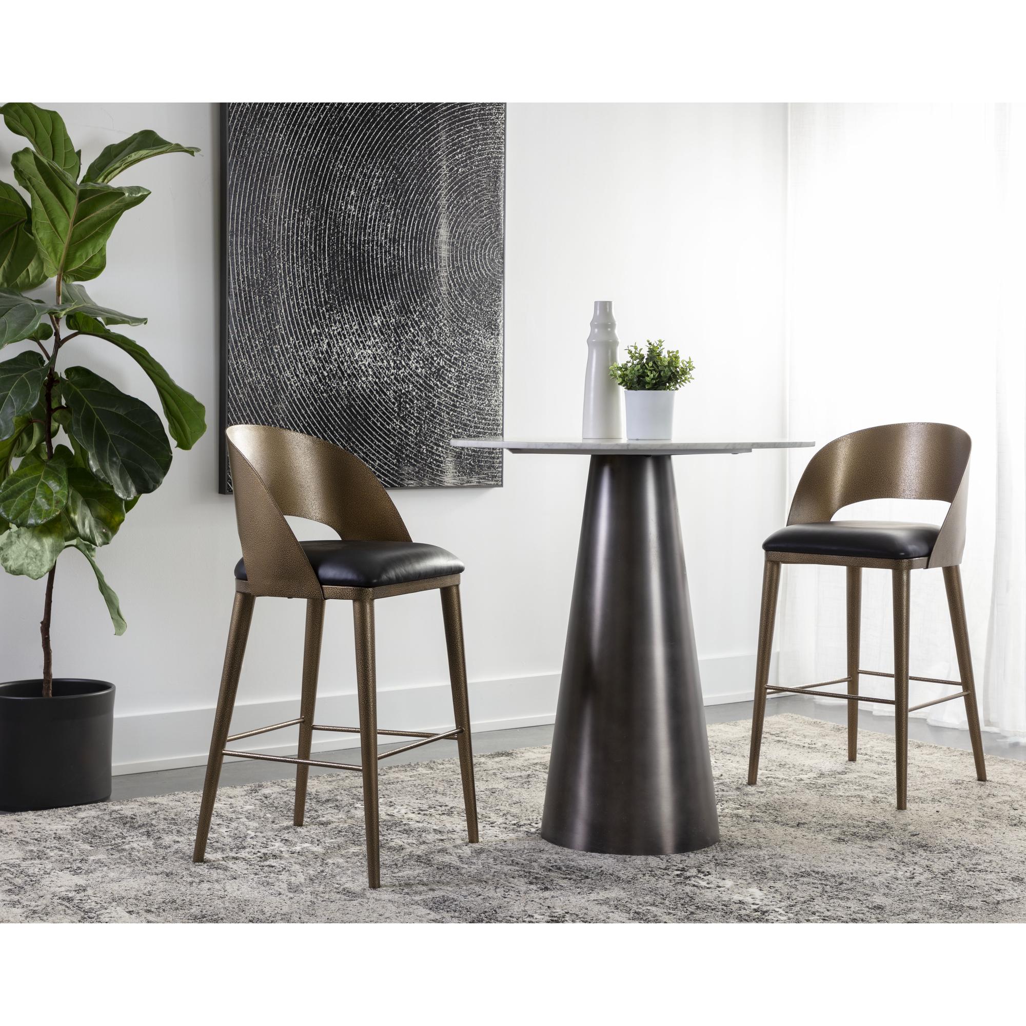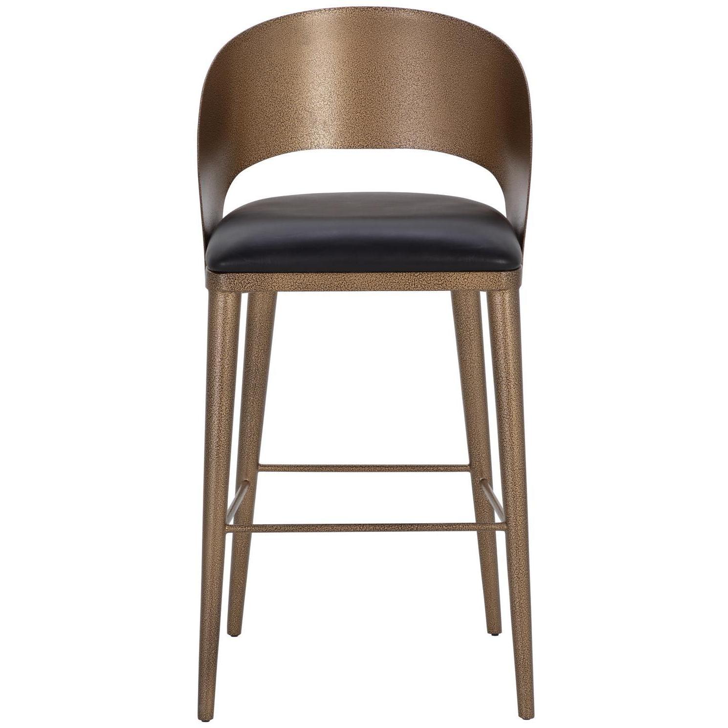 Dezirae Barstool – Antique Brass – Charcoal Black Leather