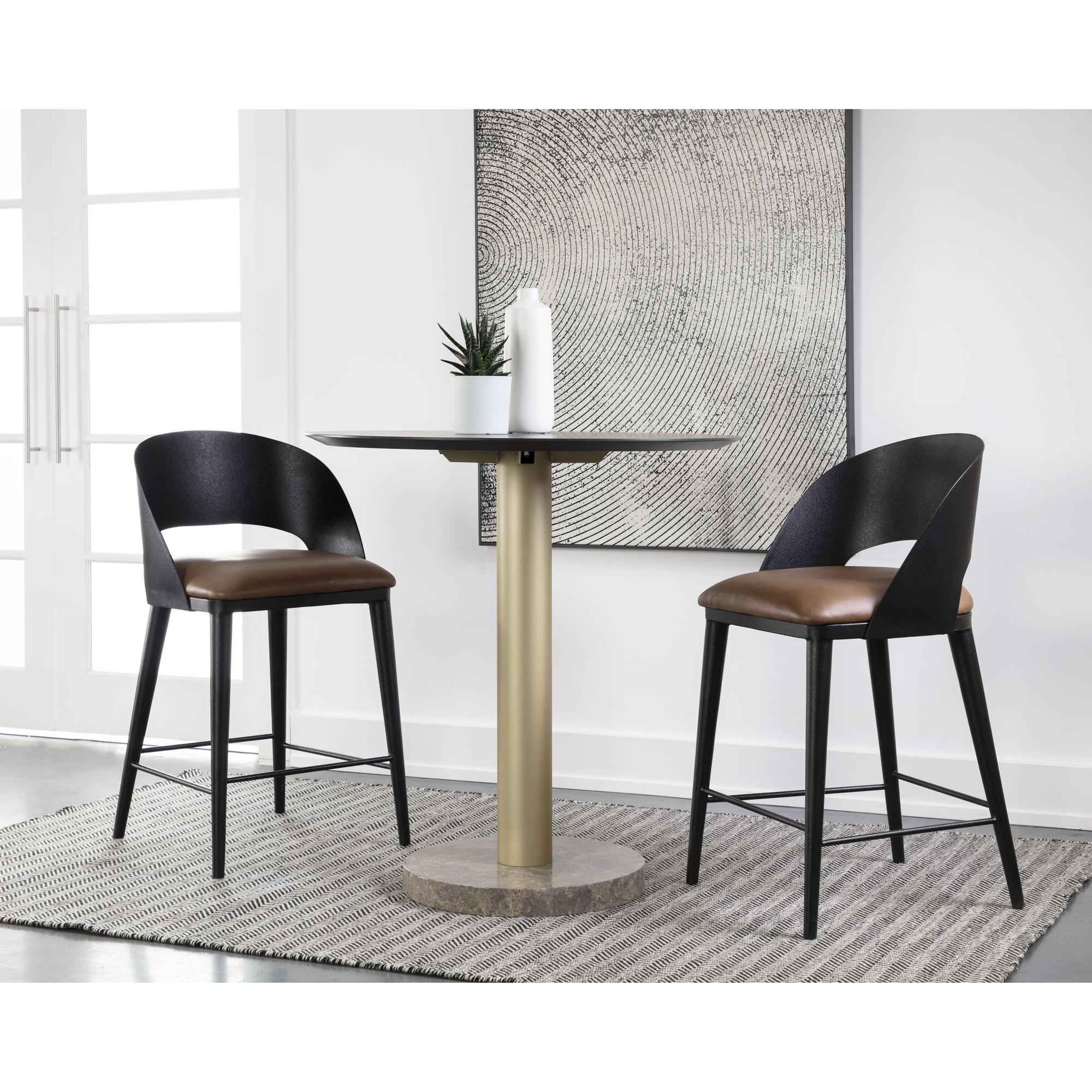 The Dezirae Counter Stool features a sleek profile with a strong curved back for a stylish design that will fit into any dining space. The legs and headrest are beautifully crafted from black textured powder-coated iron. A cognac leather seat adds an alluring contrast to round out the look. Handle with Care: This design has been crafted with 100% leather. Leather is a natural material; as such, colour variations, markings, wrinkles, grooves and light scratches are acceptable and appreciated characteristics. No two pieces are alike. Visit our Product Care page for more information on how to ensure the lasting beauty of this piece. Made in India. With refined craftsmanship, this design was brought to life by skilled local artisans. Due to the nature of handcraftsmanship, unique imperfections such as fissures, markings and variations in colour and shape are welcomed and appreciated characteristics for a truly one-of-a-kind piece. Made in India. With refined craftsmanship, this design was brought to life by skilled local artisans. Due to the nature of handcraftsmanship, unique imperfections such as fissures, markings and variations in colour and shape are welcomed and appreciated characteristics for a truly one-of-a-kind piece.