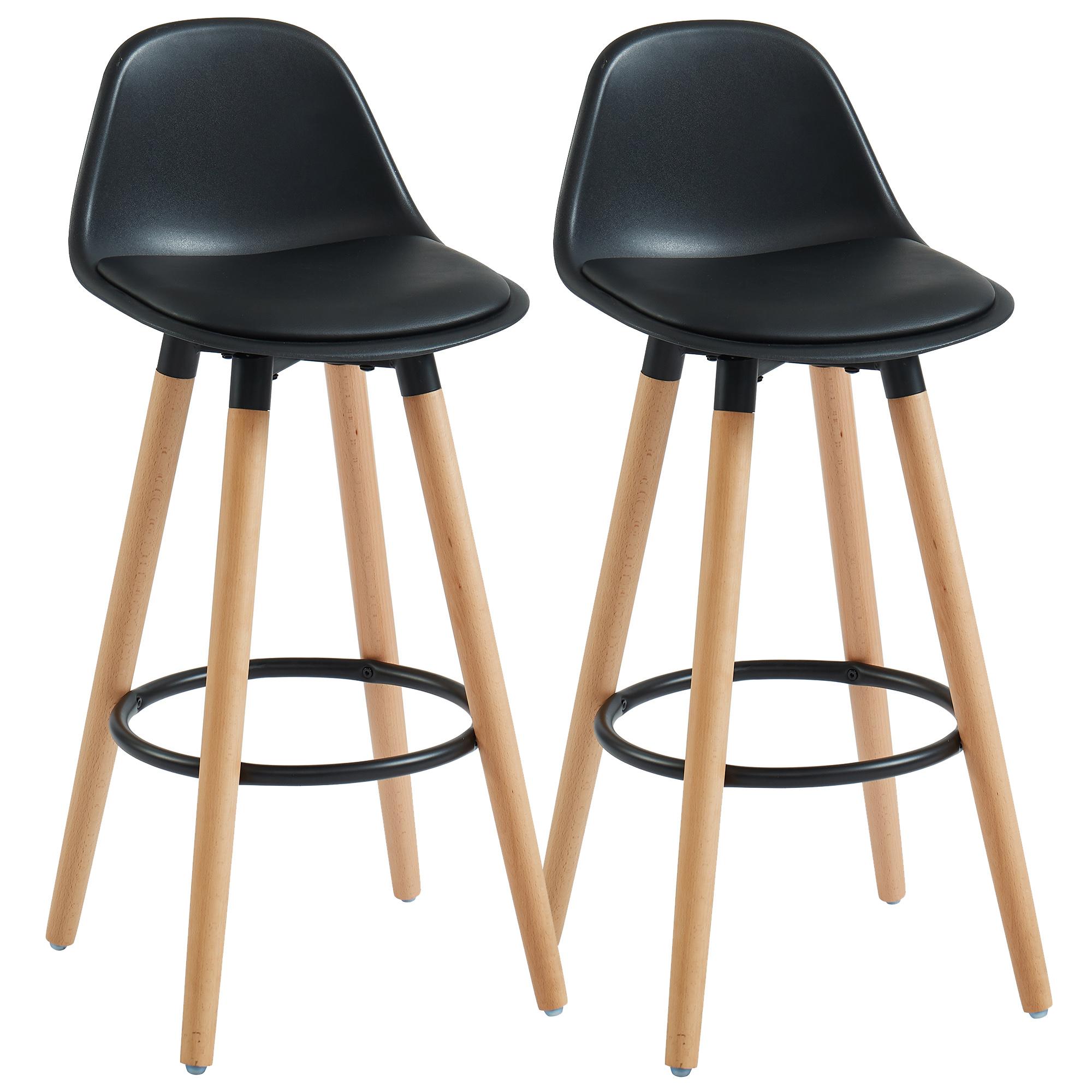 Contoured and comfortable, this counter-height stool is an easy addition to your casual kitchen counter. The plastic seat back is easy to wipe clean while the faux leather cushion adds some comfort when you’re seated for the long-haul. The solid wood legs, with their natural wood finish, provide a clean, A-line design that looks as pretty as it is functional for greater support.