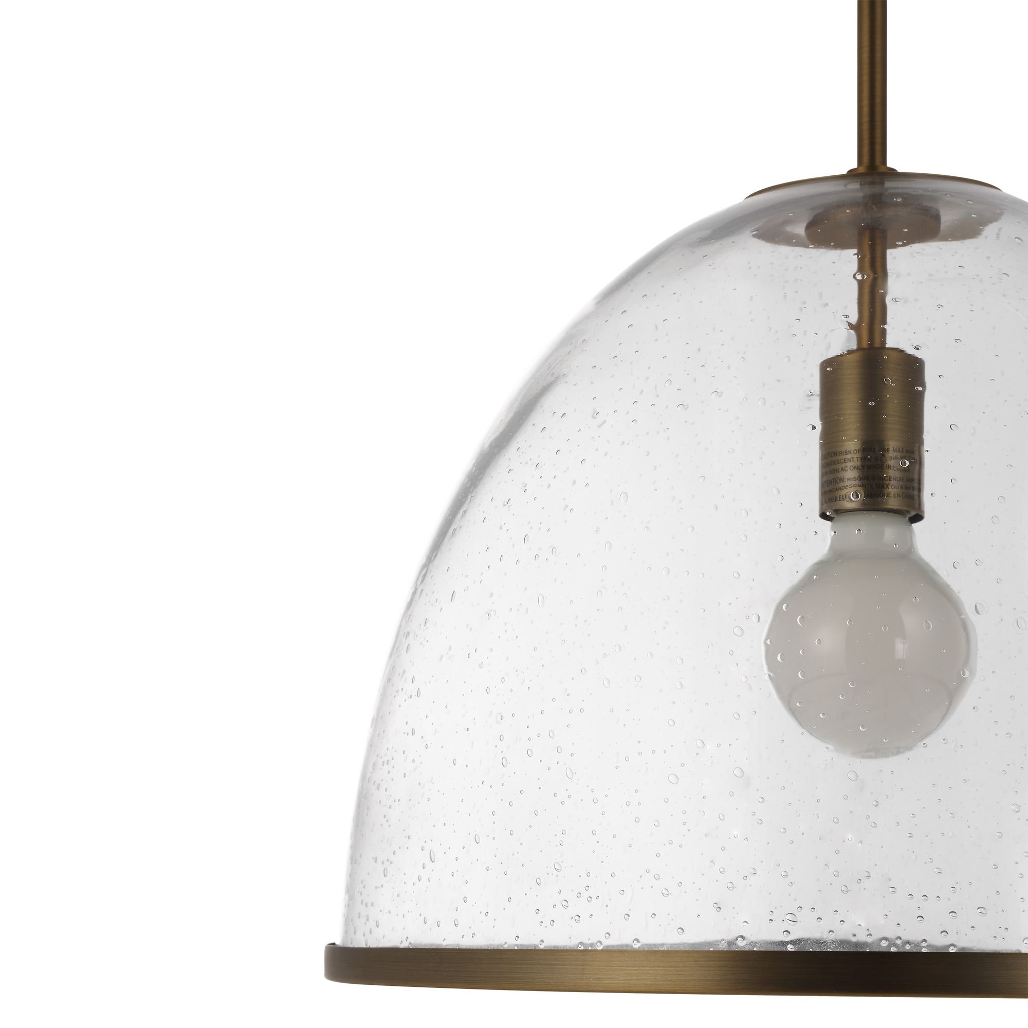 Offering softly diffused, yet ample lighting in any space, this seeded glass light fixture will bring a fresh update to any room. Traditional meets modern in its dome-shaped shade featuring dark antique brass-plated accents. Perfect for hanging solo or in multiples, it’s up to you to decide how big an impact you’ll make.
