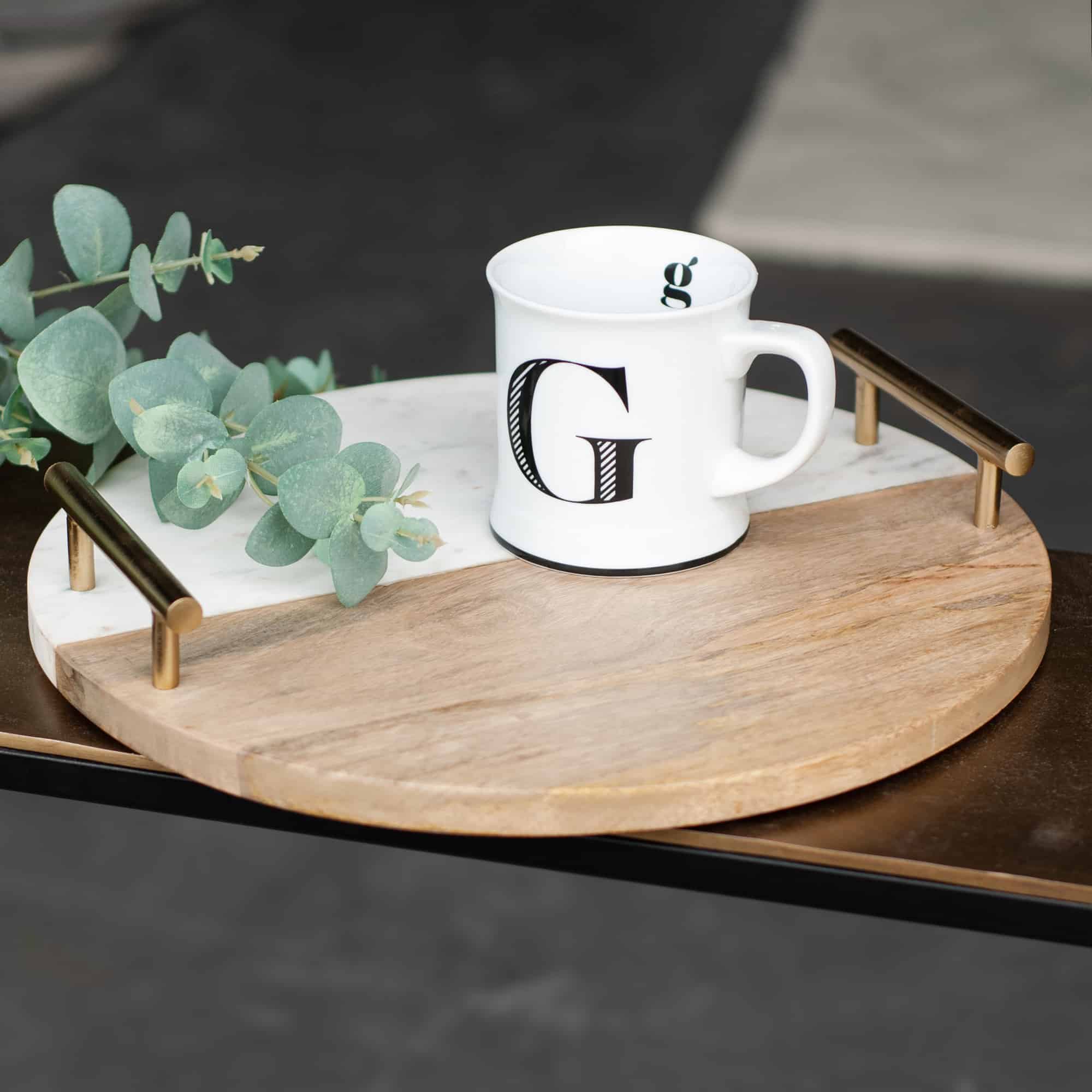 The home gathering experience is elevated aesthetically with this tray design. An attractive blend of warm and cool textures and tones, its half marble, half wood composition makes it stand out from the norm. Antique brass plated handles further enhance the piece and offer greater ease-of-use.