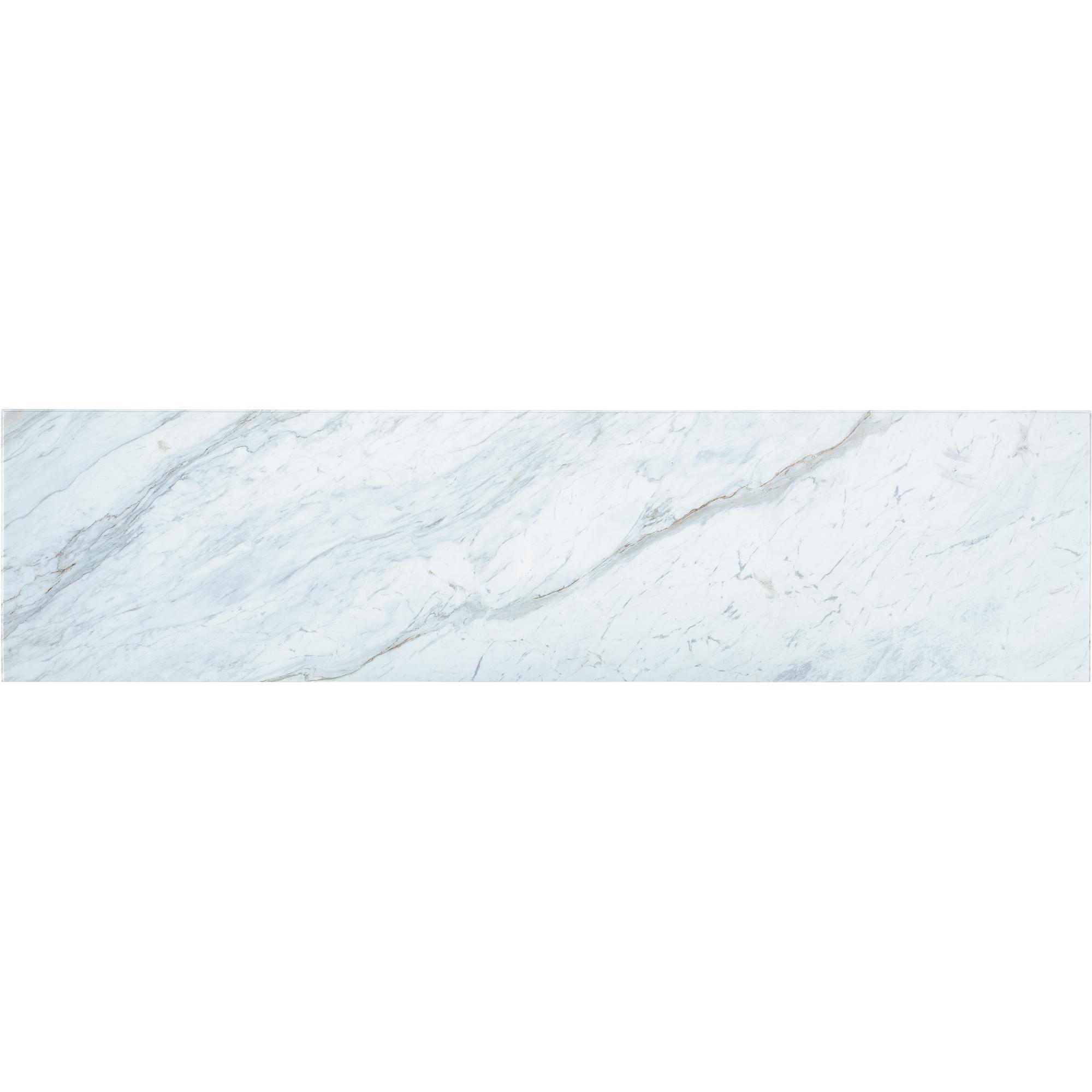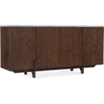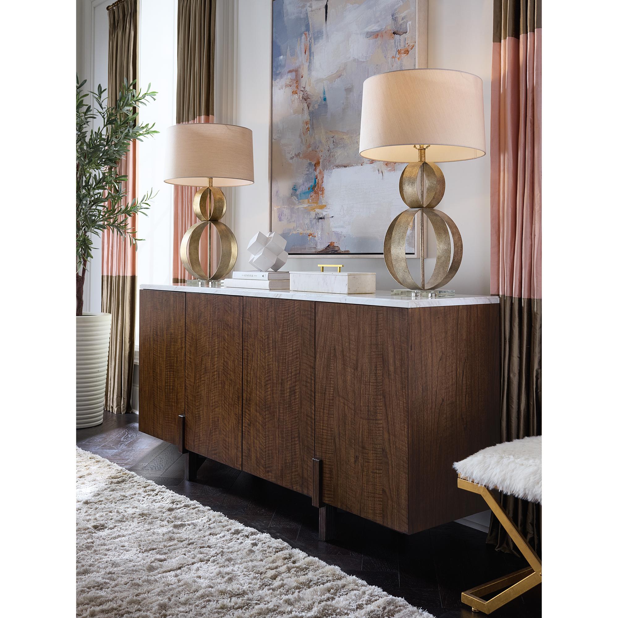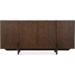 Finish: Rich, dark figured walnut veneers with gold-colored square knobs with a Volakas marble top featuring white, gray, cream and beige coloration