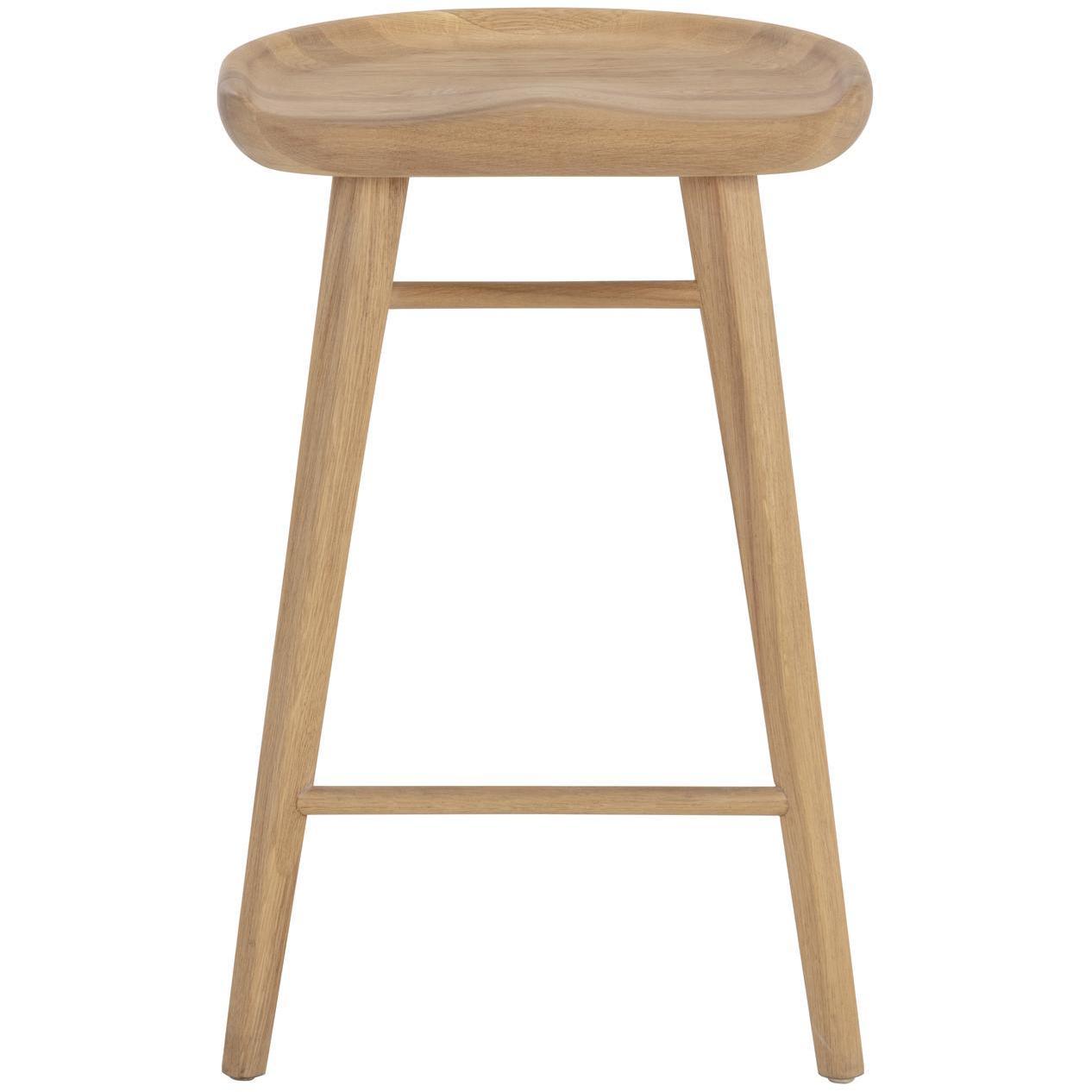 An impressive counter stool crafted from solid oak wood with a white wash finish. The sculpted seat and traditional design will complement transitional, contemporary and modern spaces of any size.