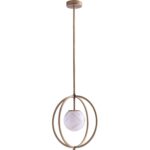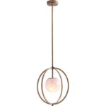 The Donata Pendant blends elegance and modern design in a striking silhouette. Crafted in Italy, it features a globe of mouth-blown glass cradled within a sculptural brass cage. The warm glow from within highlights the delicate swirls of the glass, creating a refined focal point.