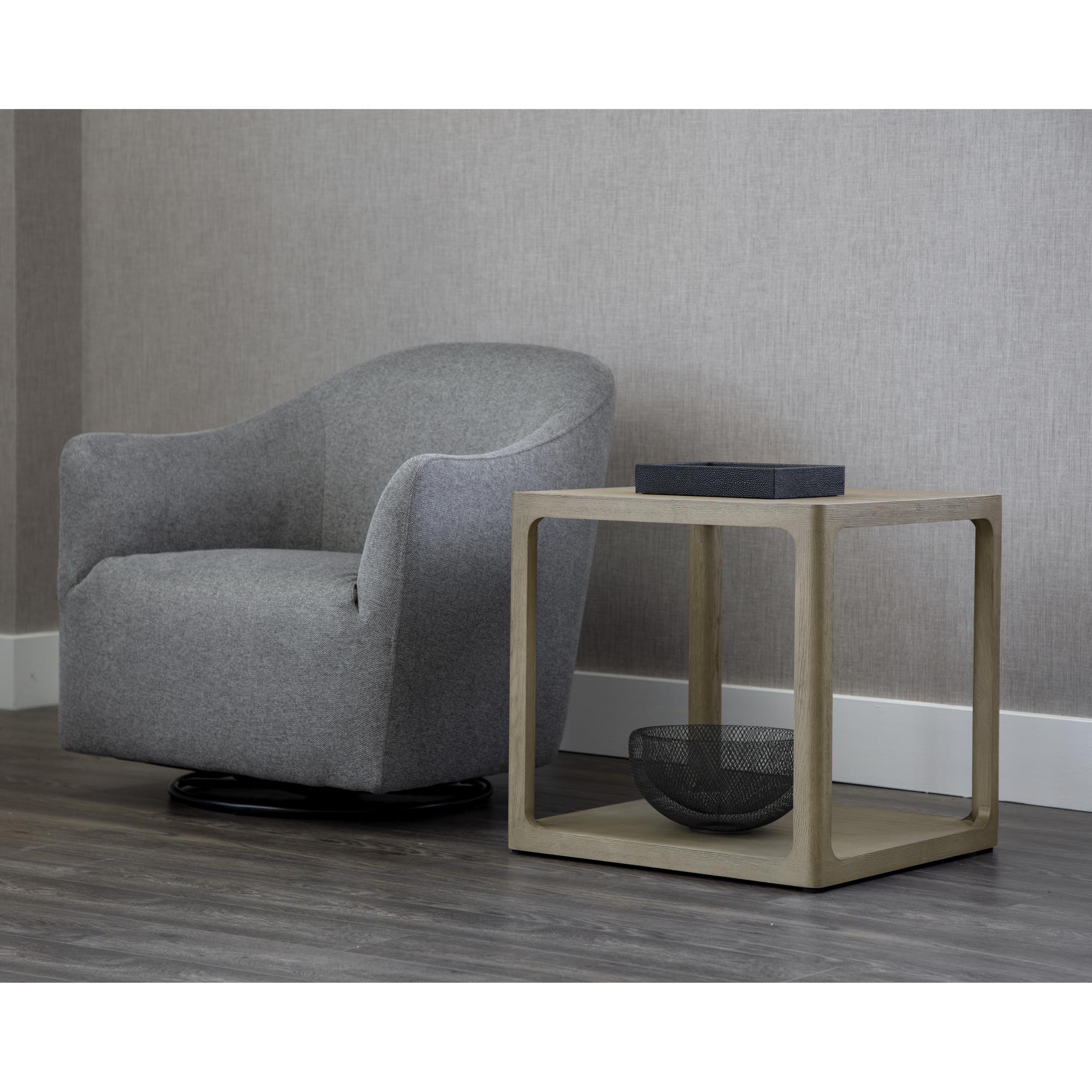 With a clean and modern composition, this side table will add minimalist style into any space. Crafted from a solid oak wood frame with a smoke grey oak veneer. Coordinating coffee and console tables also available. As wood is an organic, porous material, these pieces will contain natural variation of texture and may also exhibit fine indentations and cracks. Wood pieces will also display a disparity of colour and grain, and visible knots and burls that add to the character of each piece.