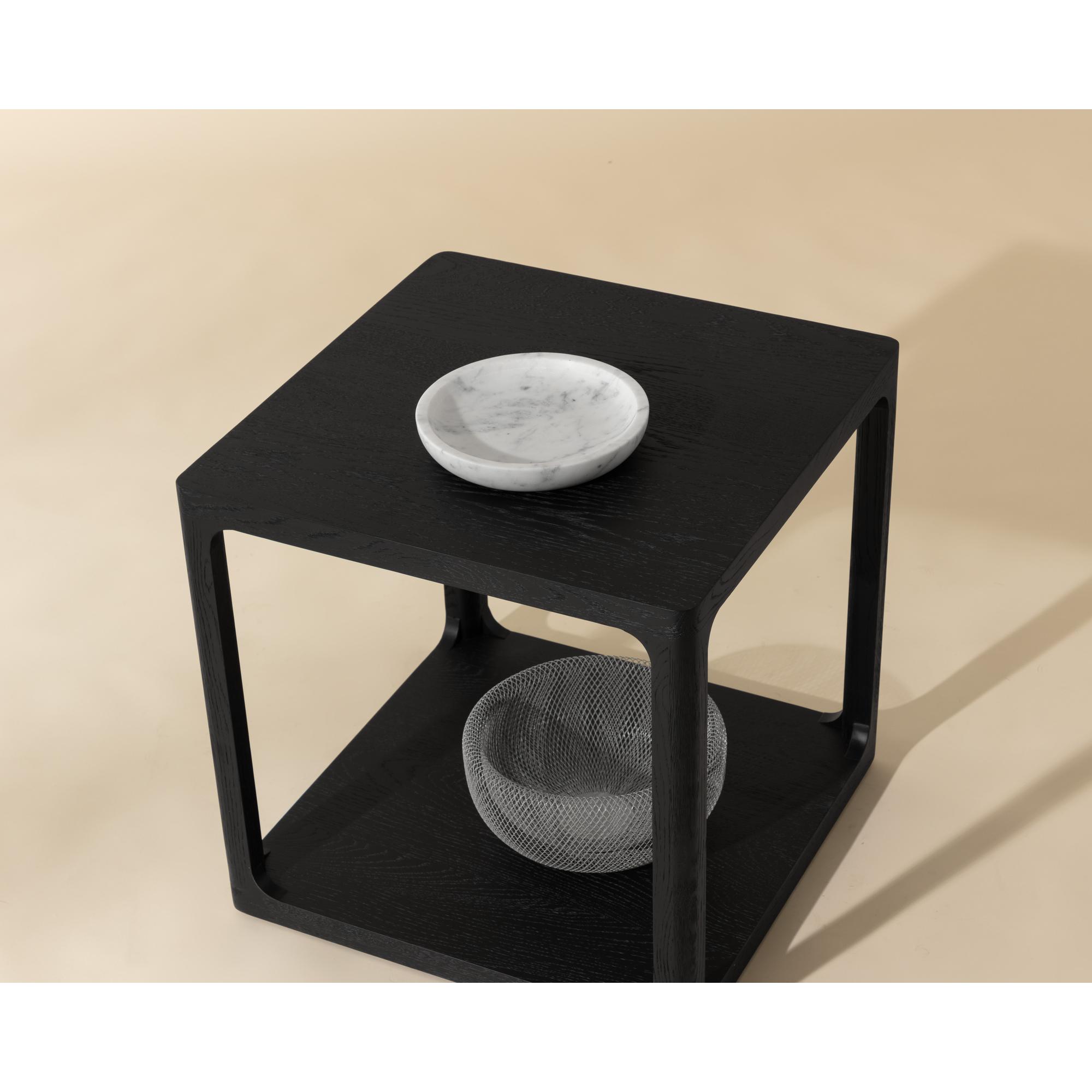 With a clean and modern composition, the Doncaster Side Table will add minimalist style into any space. Crafted from a black solid oak wood frame with a black oak veneer. As wood is an organic, porous material, these pieces will contain natural variation of texture and may also exhibit fine indentations and cracks. Wood pieces will also display a disparity of colour and grain, and visible knots and burls that add to the character of each piece.