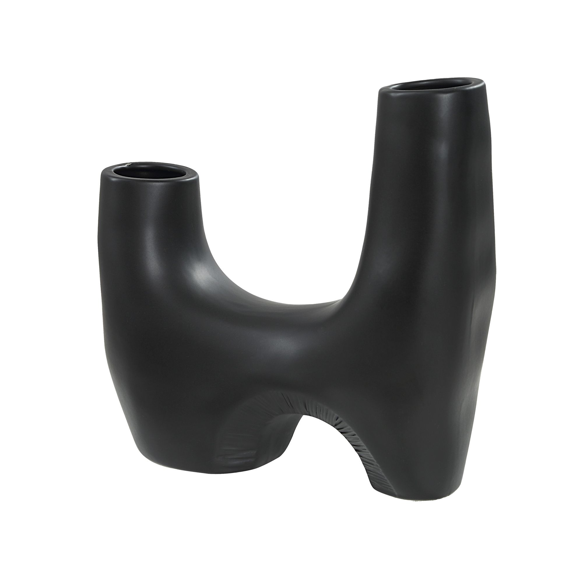Raise the bar on modern style in any design project you have in the works with this stunningly sculptural Doppio vase. Conceived by Arren Williams, Canadian interior stylist and designer, he’s successfully combined form and function to deliver this must-have decorative vase. Crafted from high-quality ceramic and featuring a matte black glazed finish, this flower vase is the perfect match for modern settings. Showcase it on a dining table or coffee table as an eye-catching minimalist centerpiece or mix it in with a collection of treasured decor. Either way, having this ultra-modern vase in the mix is a sure-fire way to elevate any interior.