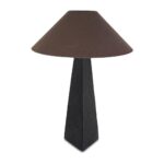 - Angled Cotton Shade: A warm brown, angled shade made from cotton fabric complements the base’s aged black finish.