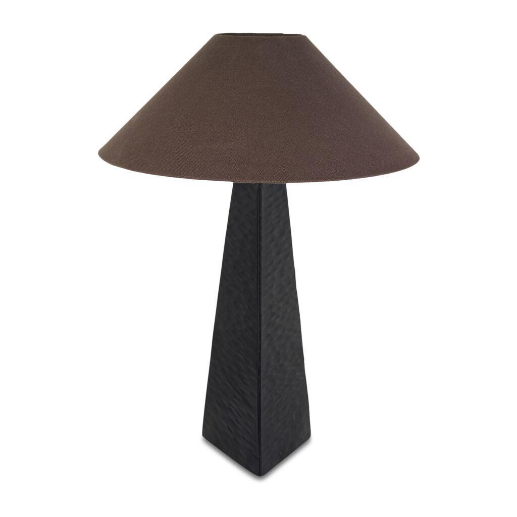 When light adds weight. Dorsey brings some serious edge to the table. Its angular, hammered metal base is all texture, finished in aged black for that lived-in feel. Up top, a warm brown cotton shade adds the right glow. Sculptural, grounded, and confident, it’s the kind of lamp that knows how to pull a room together.