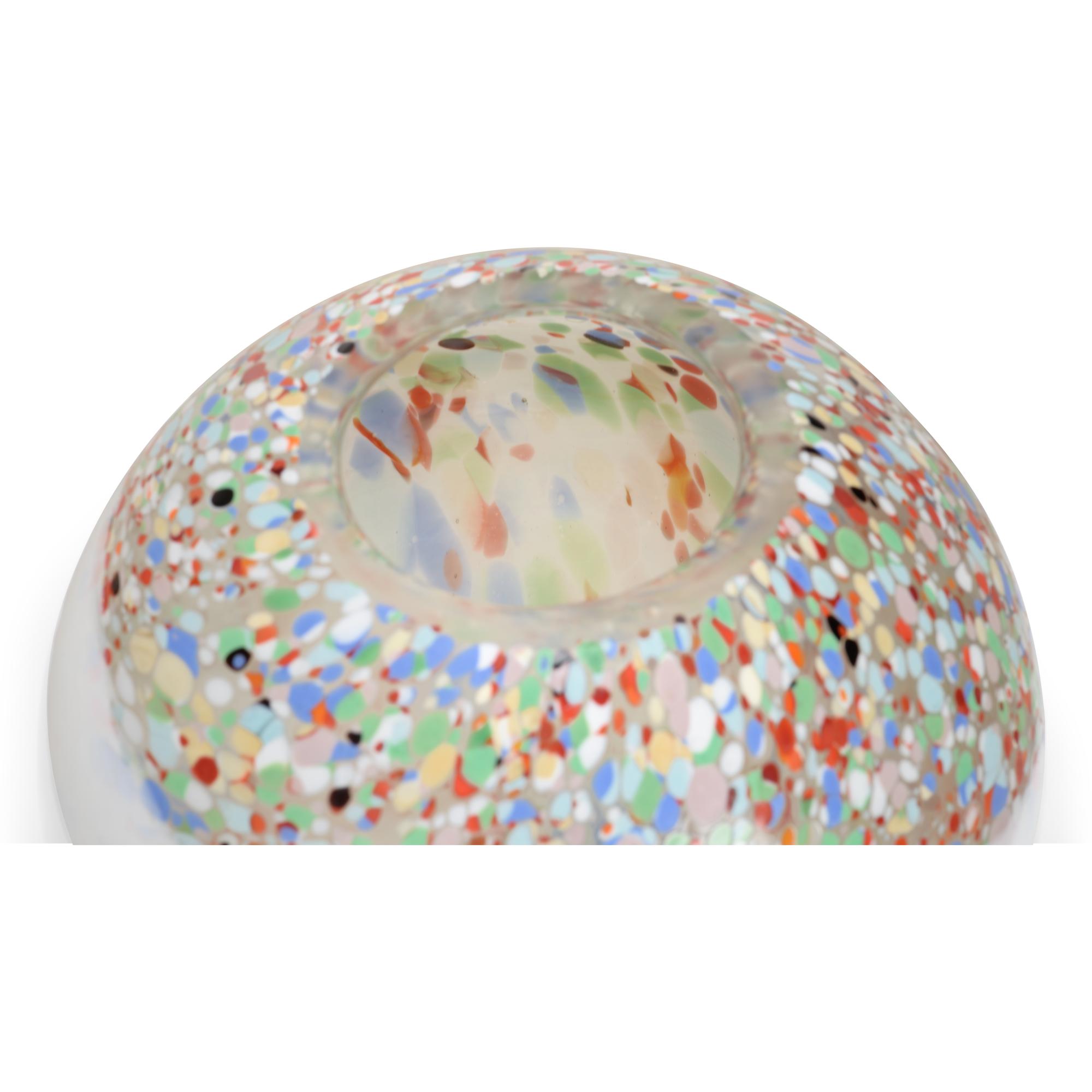 The Dottie Vase was designed to go with the Auntie Dot Lamp #60967. It is a multi-color dot design that transitions into a white milk glass. It is great for a candle glow or fresh organic arrangements.