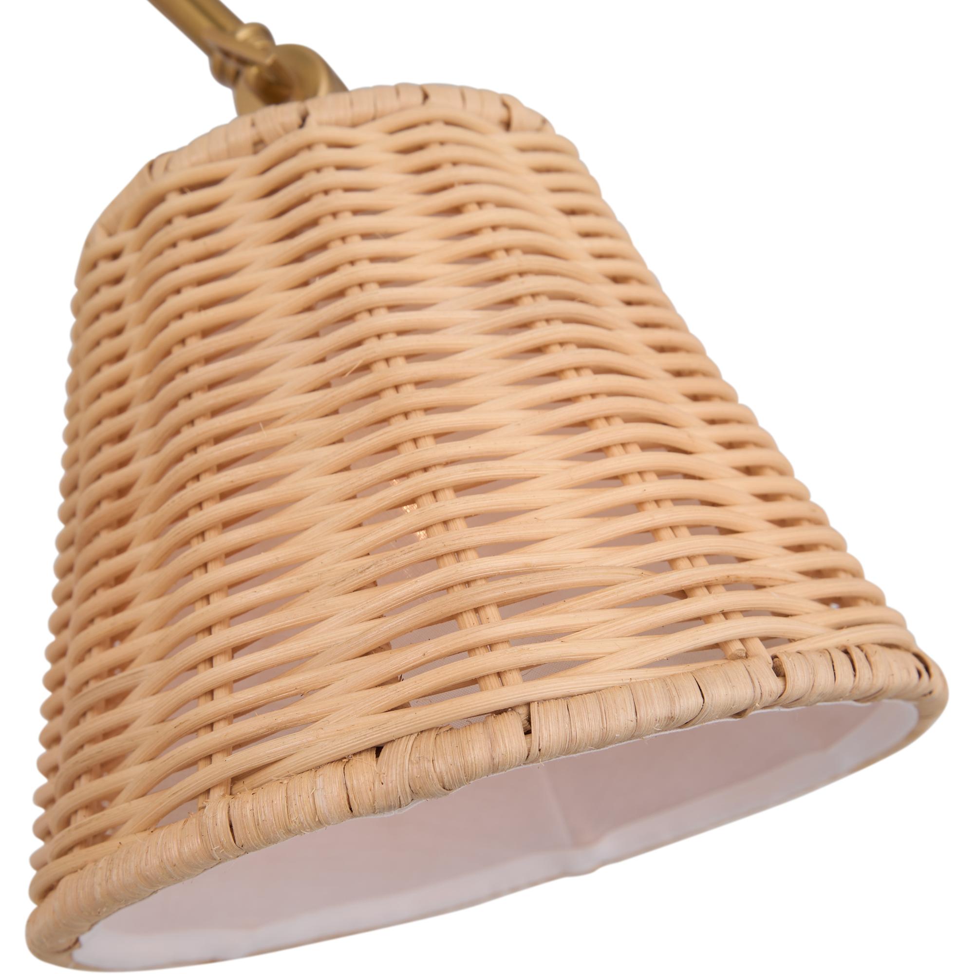 A fresh take on classic task lighting, the Downtown Sconce blends natural textures with sleek design. Its woven rattan shade brings warmth and a touch of island charm, while the adjustable brass arm and backplate offer tailored functionality with a polished edge. Designed for both style and versatility, the sconce casts a soft, inviting glow—perfect for reading nooks, bedside walls, or any space that calls for refined casual elegance. Designed exclusively by Amanda Lindroth for Chelsea House.