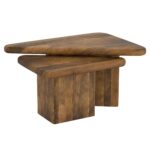 Geometry plays a big part in how our spaces come to life – these triangular tables work well create that visual interest. The solid mango wood tables have varying heights so they can be nested together or placed separately, whatever configuration appeals to you. Thick and sturdy tables tops are great to hold a host of snacks for a dinner party, or to kick your feet up on at the end of the day. Smaller scale tables will work well in smaller spaces, or nested together will create a larger table look.