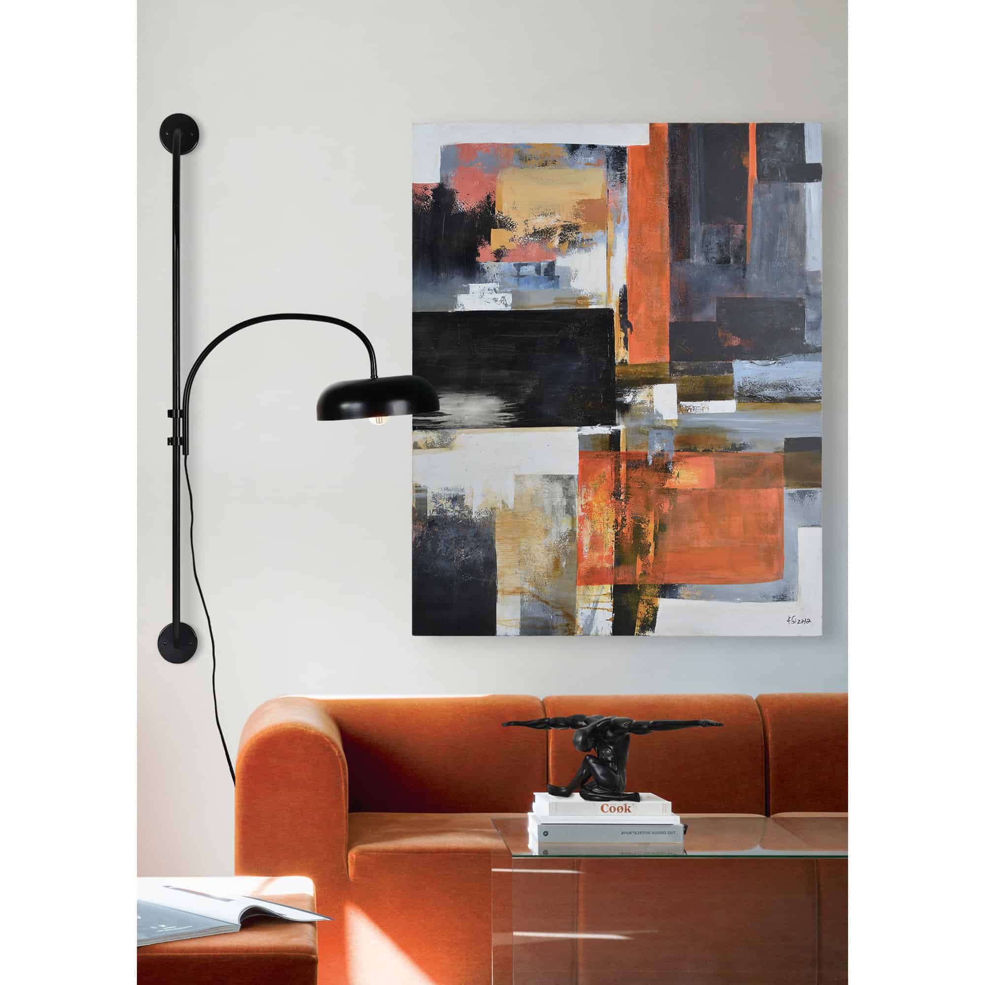An industrial chic sconce in black powder coated iron makes a bold impression. It features an LED bulb and an in-line switch for easy illumination. Mount a pair over your bed for an undeniable focal point.