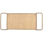 The Durva Bar Cart features a classic silhouette made from mixed materials. Clear tempered glass is placed on top of two natural rattan shelves to give the piece a relaxing coastal feel. Made in India. With refined craftsmanship, this design was brought to life by skilled local artisans. Due to the nature of handcraftsmanship, unique imperfections such as fissures, markings and variations in colour and shape are welcomed and appreciated characteristics for a truly one-of-a-kind piece.
