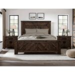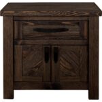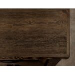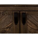 - Lightly distressed wood with a brown multi-step lacquer finish.