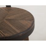 The Dutton stool collection uniquely combines rustic and industrial design elements. Its round seat, made from various wood species, features a natural wood grain that adds warmth. A metal trim around the edge enhances durability and adds a modern touch. The metal footrest encircles the four sturdy wooden legs, providing stability and comfort. This stool is a practical and charming addition to any rustic, contemporary, or industrial space.
