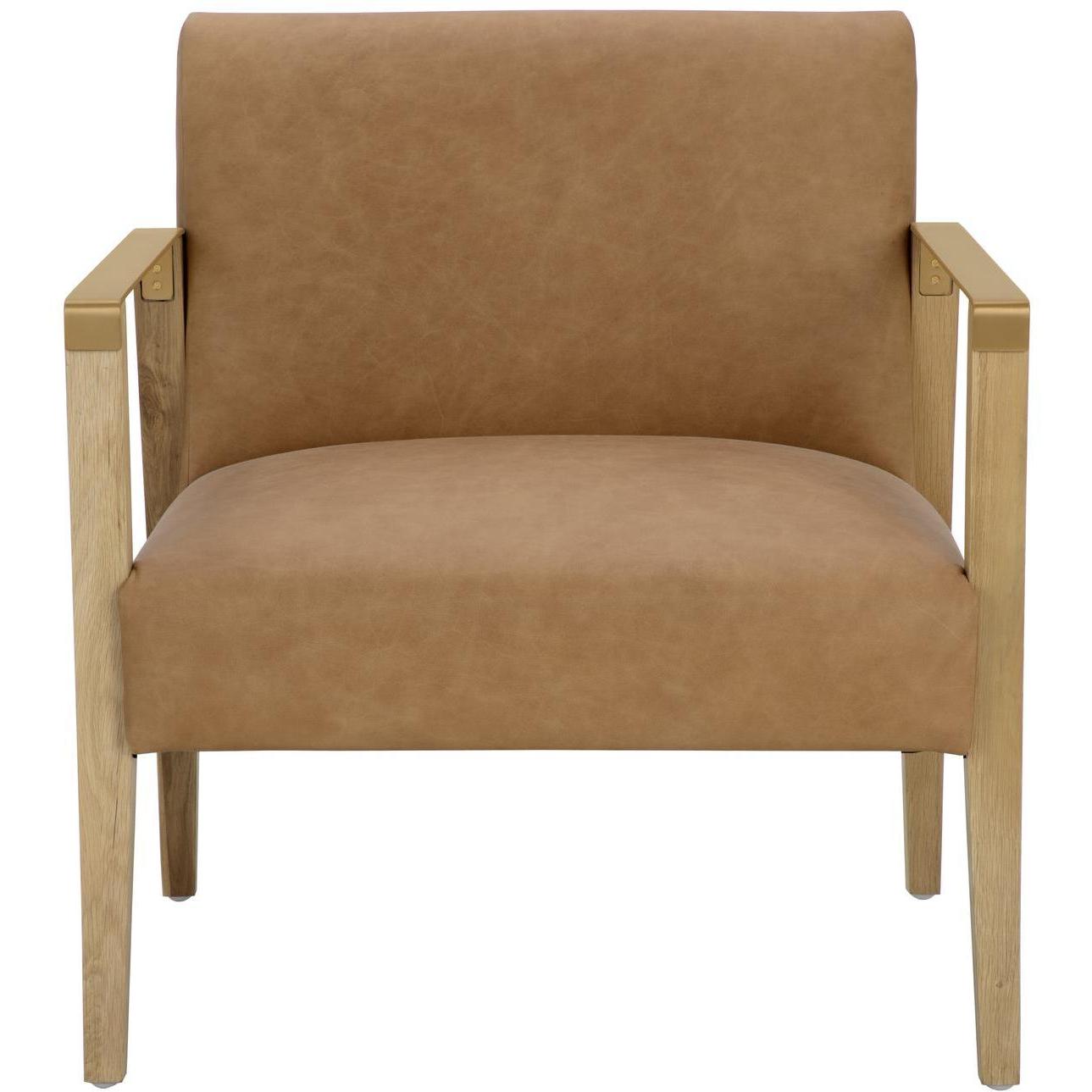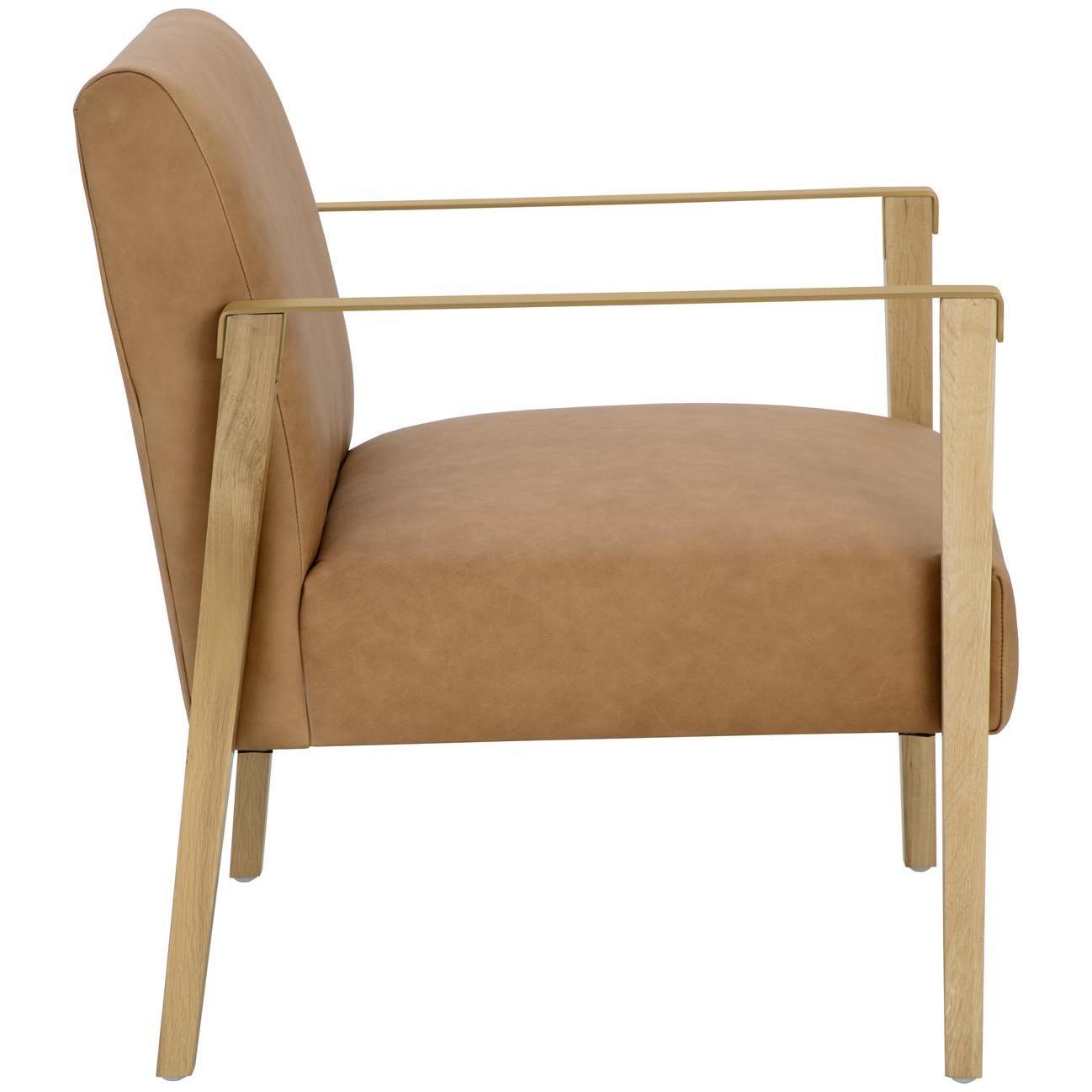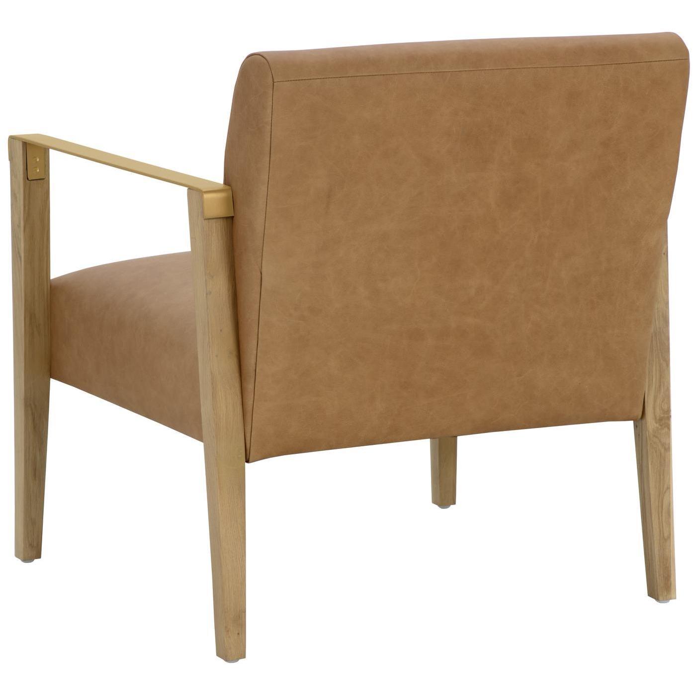 Modern with a refined edge, this lounge chair will bring comfort to any space without compromising style. Stocked in ludlow sesame leather with a solid rustic oak wood frame. Completed with accenting steel armrests in a gold finish. As wood is an organic, porous material, these pieces will contain natural variation of texture and may also exhibit fine indentations and cracks. Wood pieces will also display a disparity of colour and grain, and visible knots and burls that add to the character of each piece. Handle with Care: This design has been crafted with 100% top grain leather. Leather is a natural material; as such, colour variations, markings, wrinkles, grooves and light scratches are acceptable and appreciated characteristics. No two pieces are alike. Visit our Product Care page for more information on how to ensure the lasting beauty of this piece.