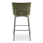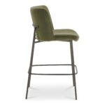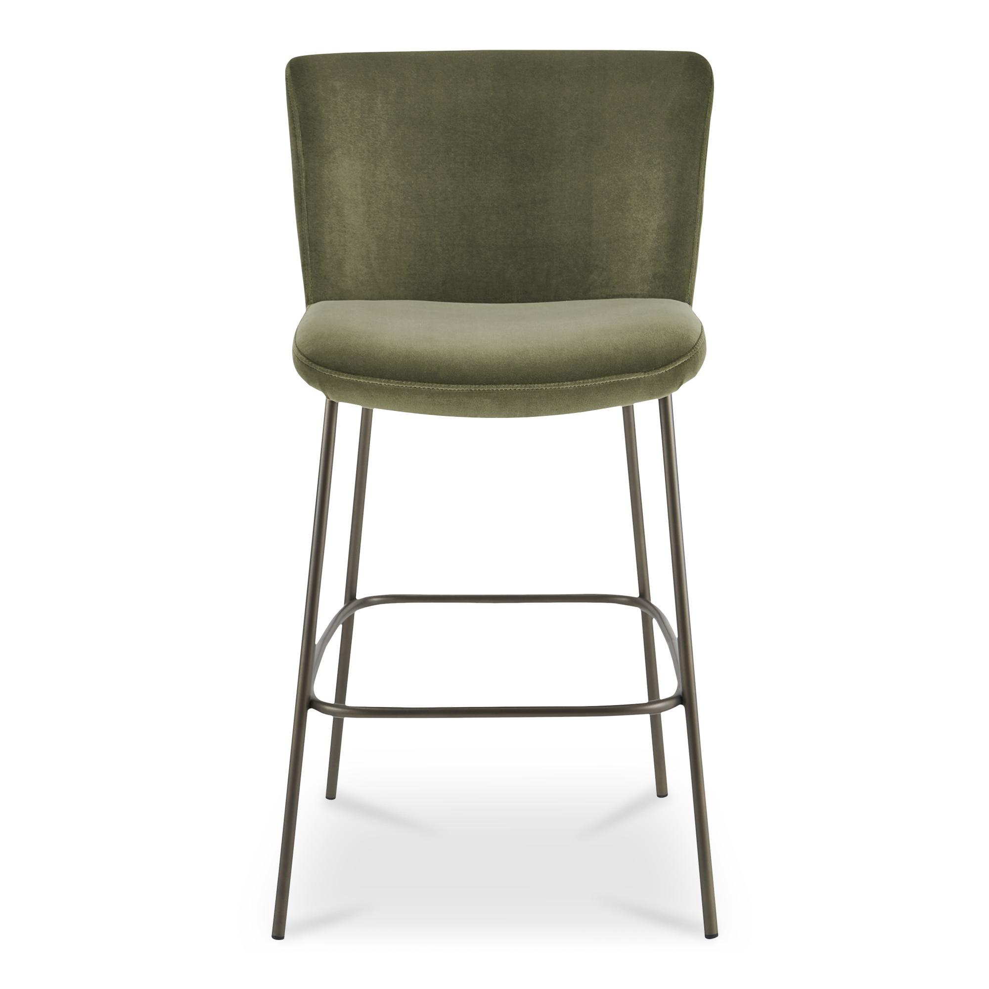 Bar height, without the stiff posture. Early keeps your space airy with a slim metal frame in a blackened bronze finish and a curved back that supports easy conversation. Foam cushioning over a plywood shell adds comfort where you feel it most, while the high-back silhouette stays visually light. Wrapped in faux green mohair, it plays nicely with wood counters and evening pours. One more round, comfortably for those nights that turn into mornings again.
