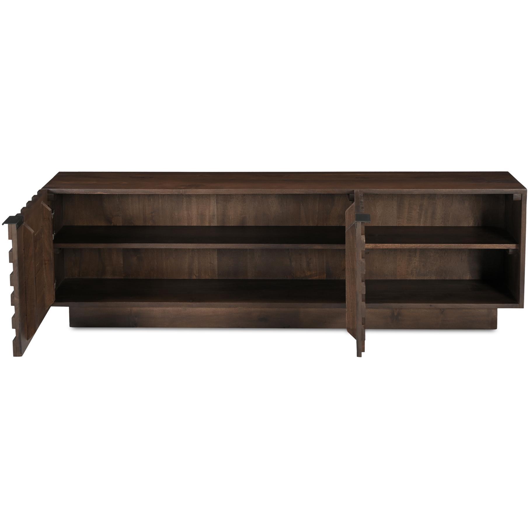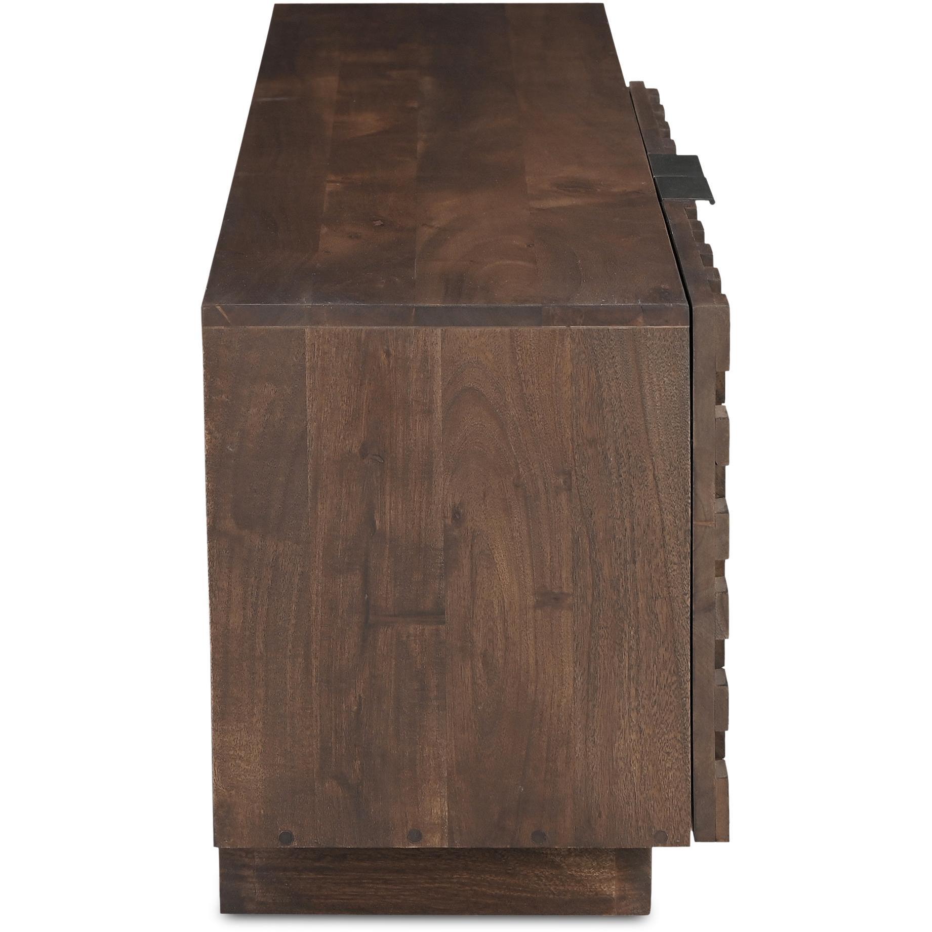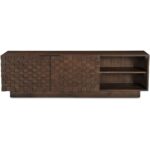 Inspired from the appreciation of geometric patterns and the beauty of simplicity, the Easton media cabinet transforms two-dimensional designs into intriguing three-dimensional textures. This piece harnesses wood’s natural vitality and depth to bring these compositions to life, creating an immersive aesthetic experience that harmonizes design and nature.