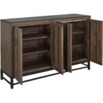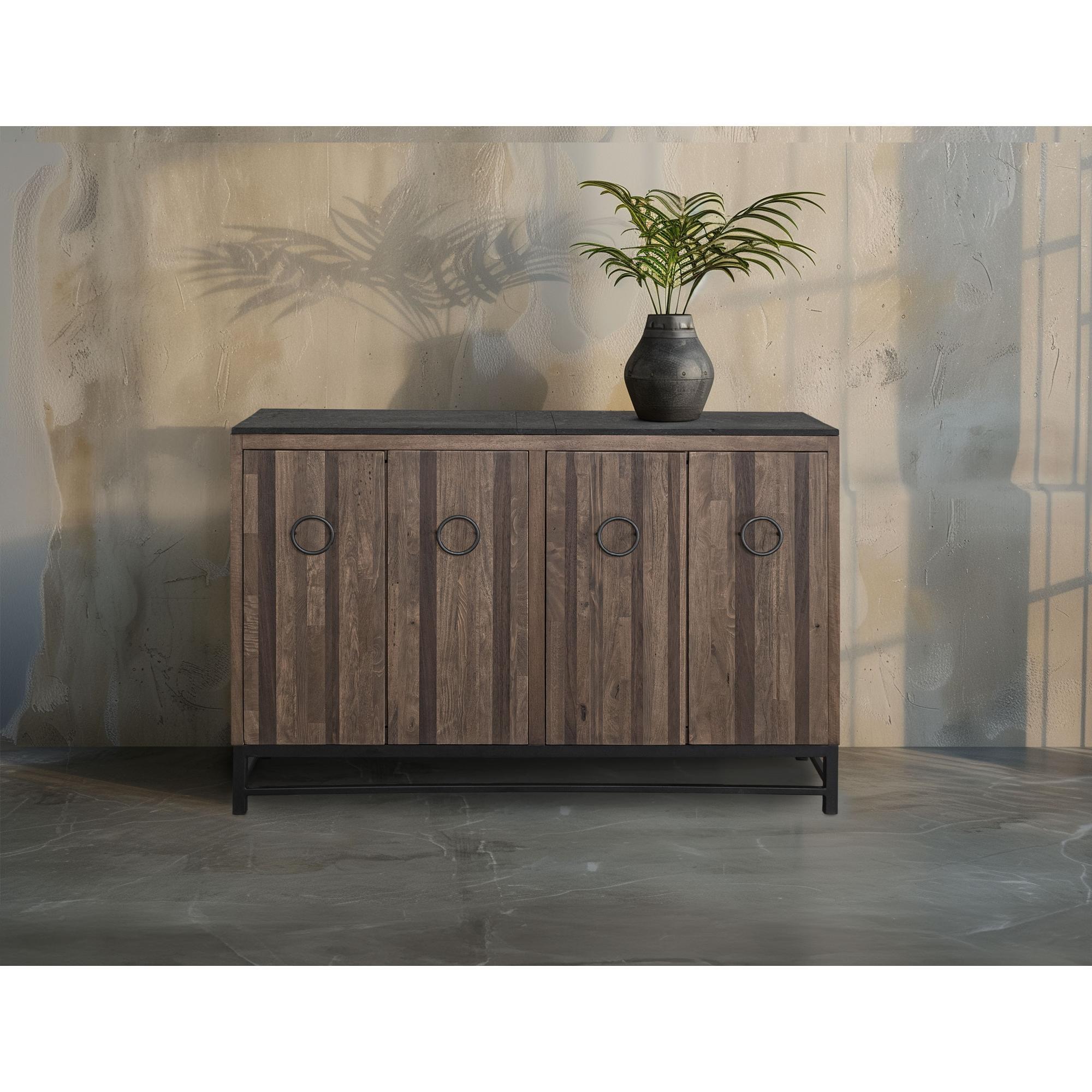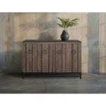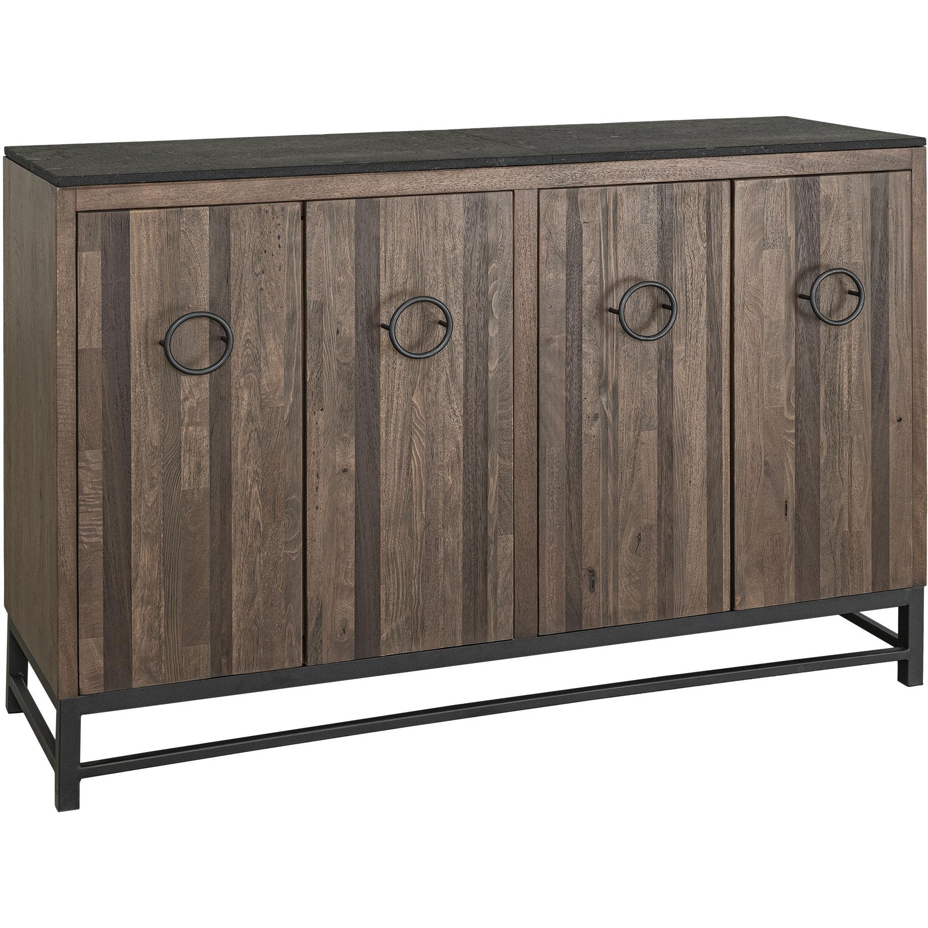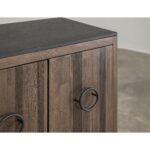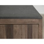 The Ebano Console has a gorgeous top made from natural stone sourced from a quarry, which brings a touch of natural sophistication to any room. The sturdy metal base offers reliable support and creates a captivating contrast with the organic texture of the stone top. The doors are adorned with custom metal pulls and feature stunning brown tones, adding an extra layer of visual appeal. These distinctive characteristics make this piece of furniture unique and eye-catching.