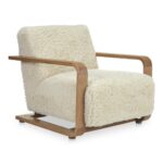 Featuring a solid oak frame finished in a warm vintage stain that highlights the natural beauty and graining of the wood, the Eckersley lounge chair draws inspiration from the past, infusing any space with rustic warmth and sumptuous comfort. While generous in its proportions, the wide, sturdy arm profile is perfectly complemented by the plush softness of faux fur upholstery, offering an irresistibly inviting tactile experience.