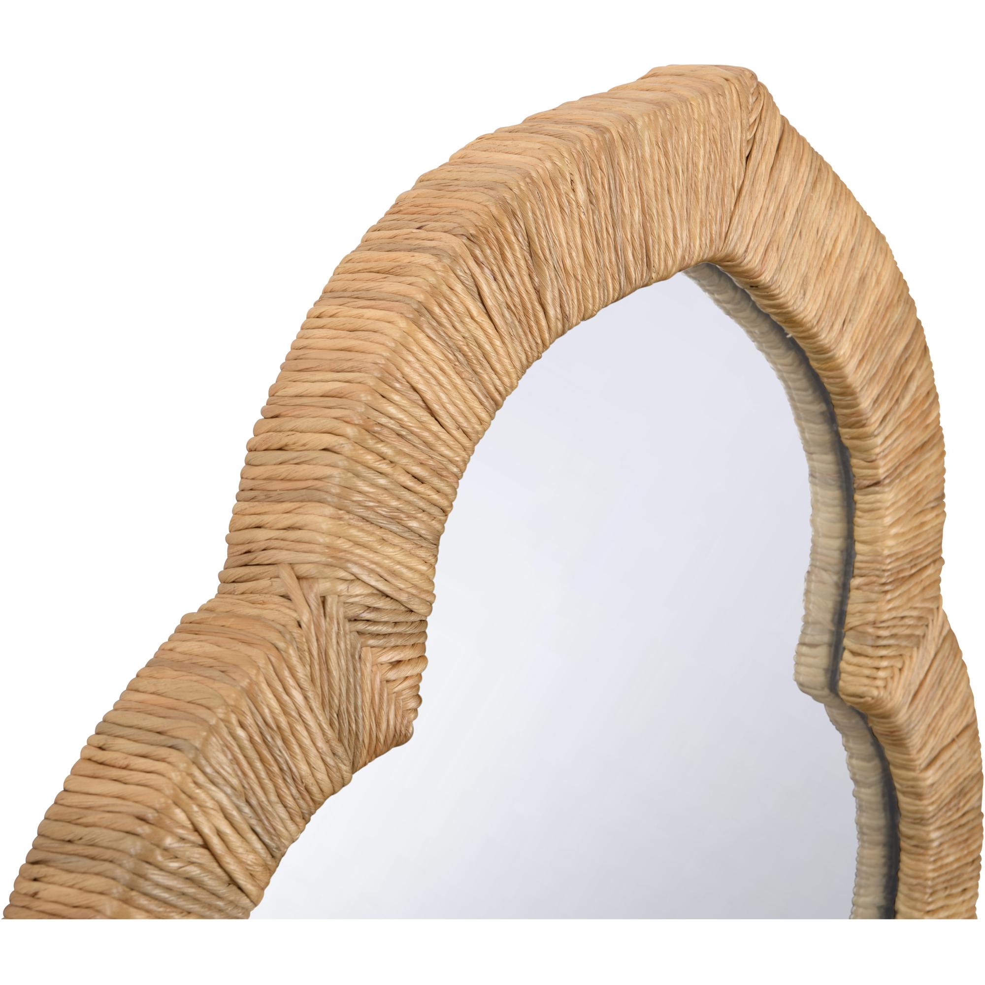 The Eden Mirror is hand-wrapped with woven jute. The silhouette and material complements a variety of aesthetics. Designed by Lisa Kahn.