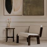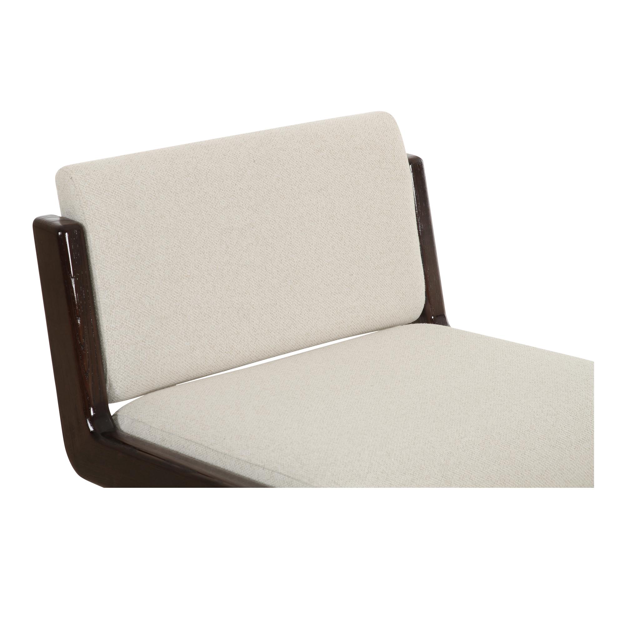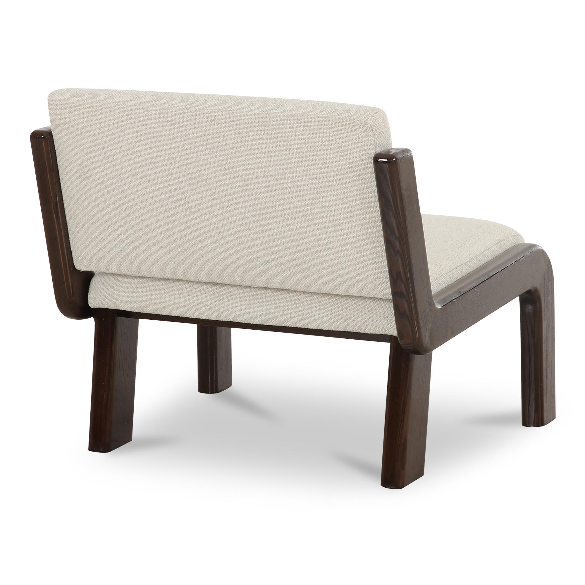 The Edie accent chair seamlessly blends vintage allure with contemporary elegance. Its sleek, armless silhouette draws inspiration from mid-century design, while modern finishes reimagine the design for contemporary spaces. Luxurious, textured upholstery embraces a wide seat, while a high-gloss solid ash frame in rich dark brown adds bold sophistication.