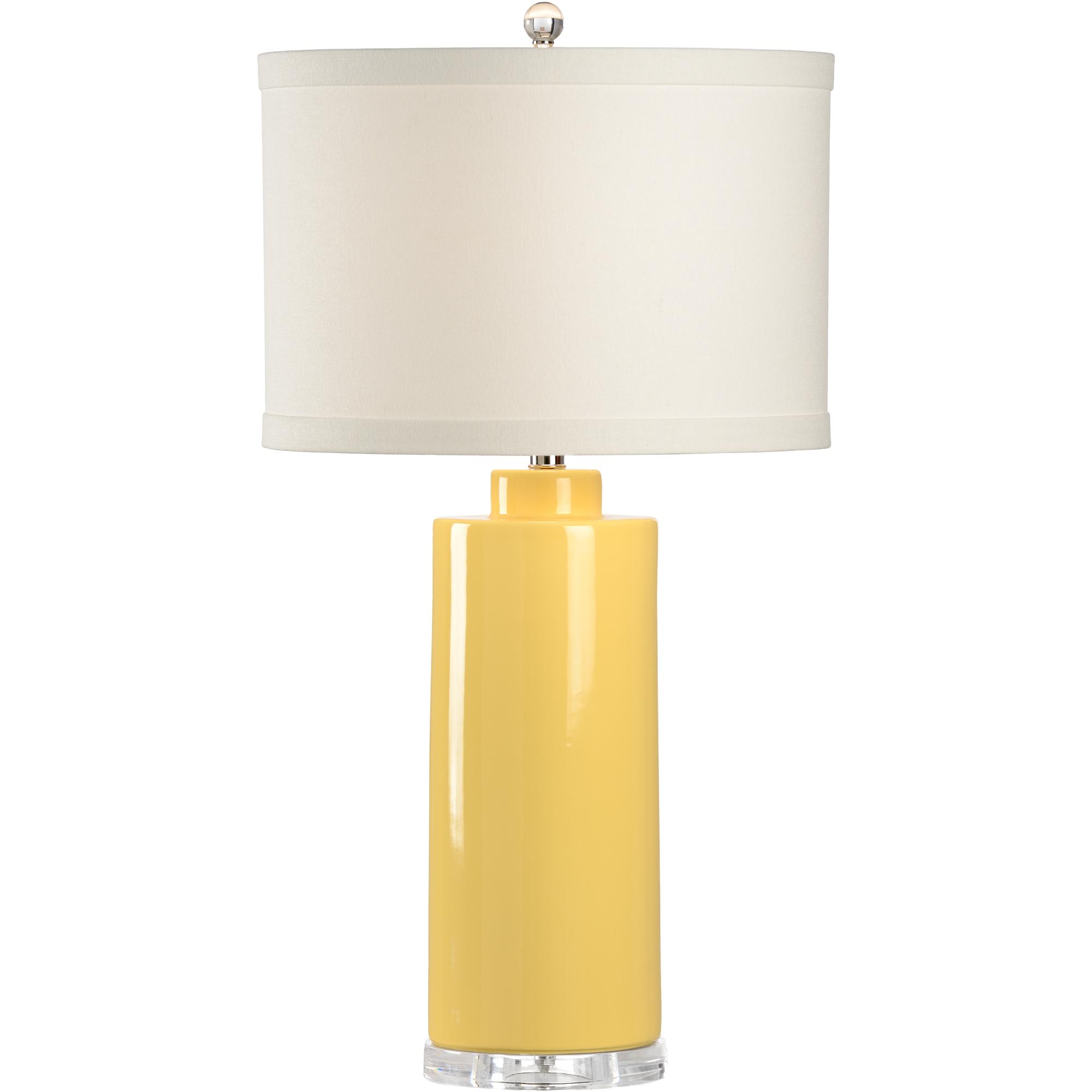 Brighten any space with this simple 31″ cylinder style table lamp. Edith lamp is made of sunflower crackle glazed ceramic and sits on an acrylic base. Topped with a cream linen drum shade and acrylic finial, this sleek contemporary design is ideal on a bedside table or sunroom.