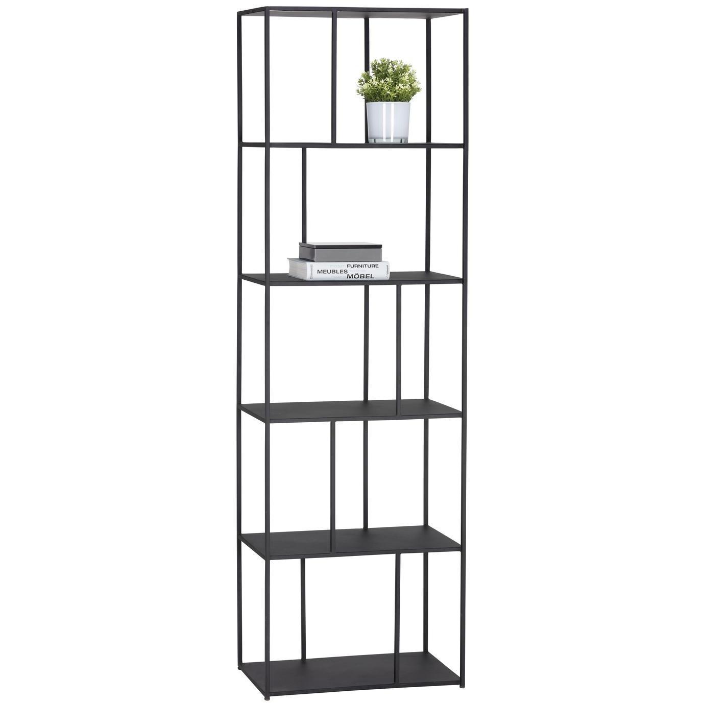 Add style and warmth to living and office spaces with this well-designed iron bookcase in a matte black finish. Can be placed in pairs or multiples for added impact and functionality. Also available in a larger size. Anti-tipping kit included.