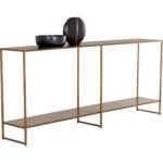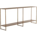 Add style and warmth to living and office spaces with the well-designed Eiffel Console Table in antique brass iron. Can be styled behind a sofa or in a hallway or entryway for added impact and functionality.