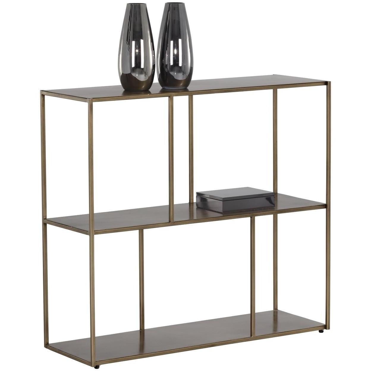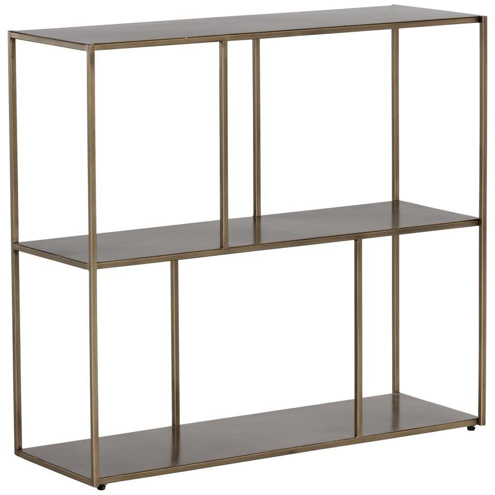 Add style and warmth to living and office spaces with this well-designed low bookcase in antique brass iron. Coordinate with additional low or standard Eiffel bookcases for extra impact and functionality. Available in small, medium and large sizes. Anti-tipping kit included.