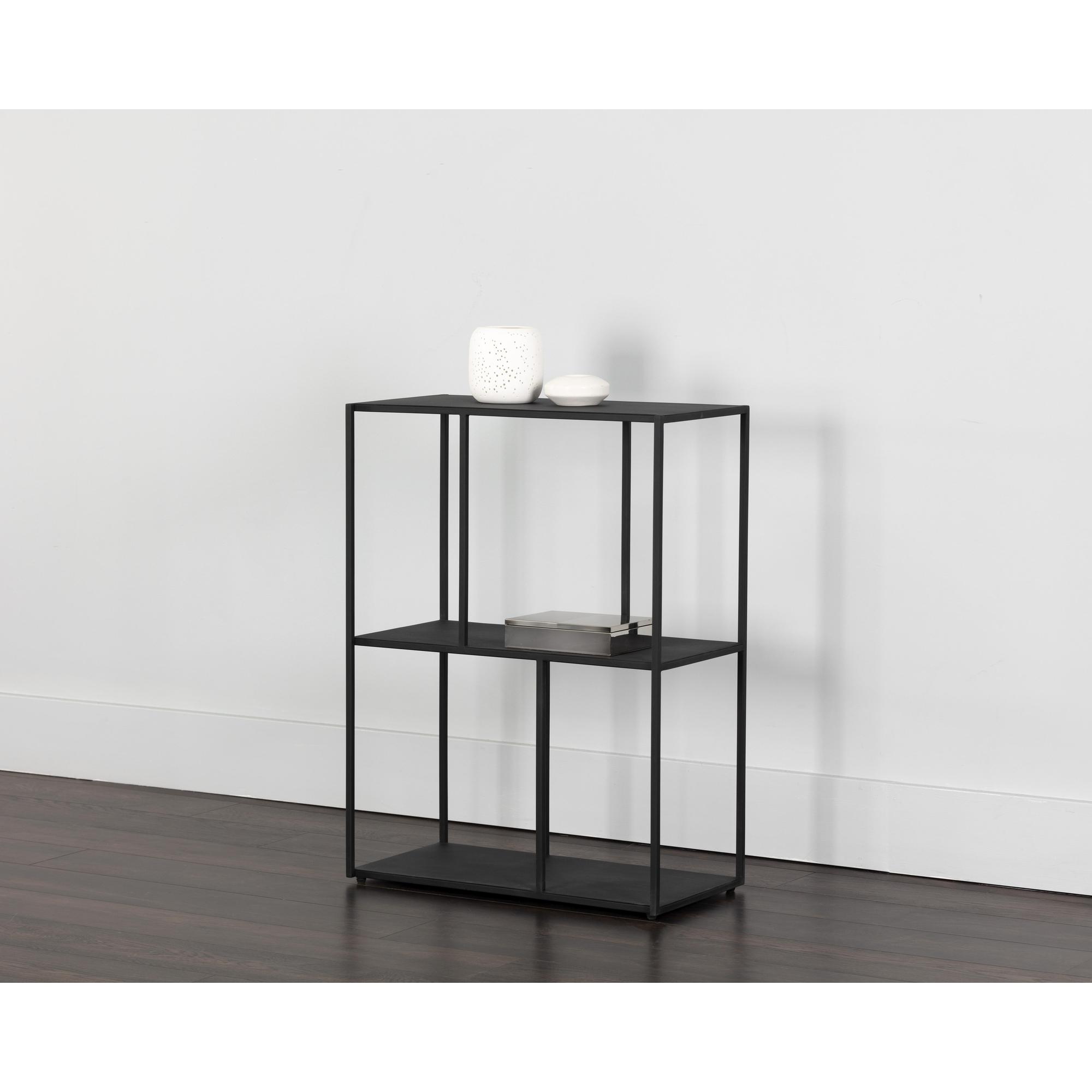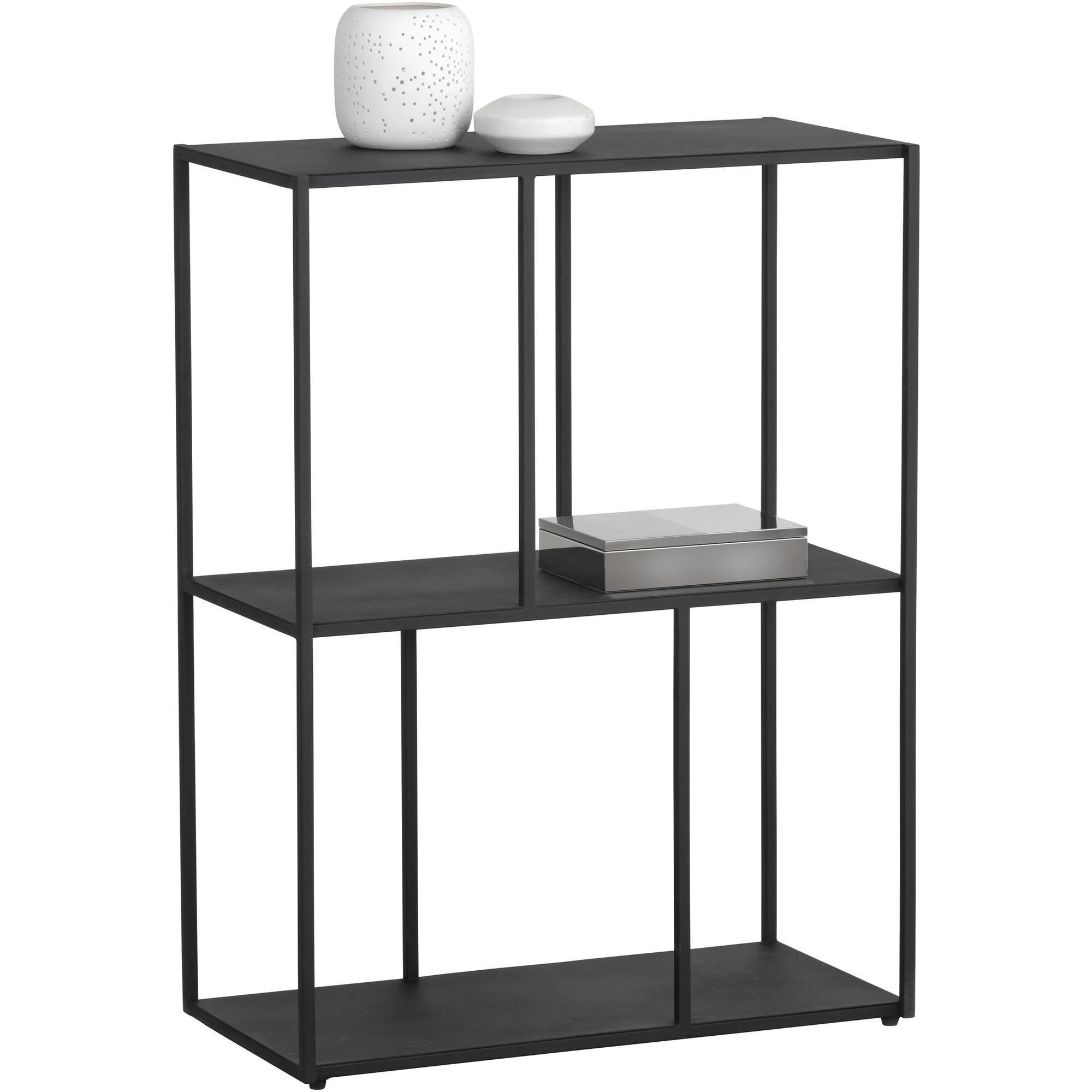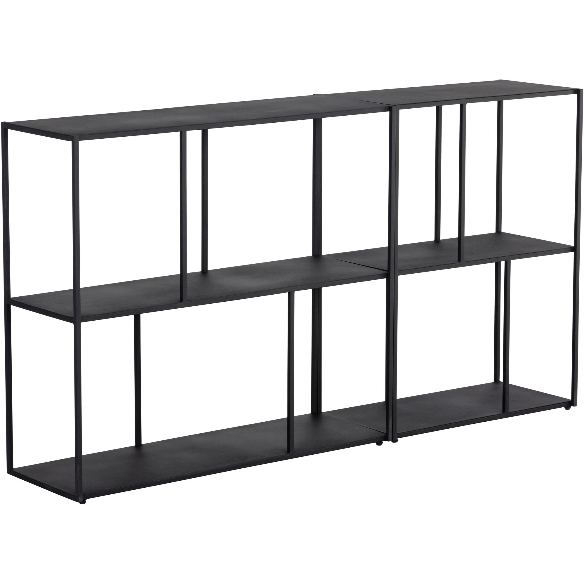 Add style and warmth to living and office spaces with this well-designed low bookcase in matte black iron. Can be placed in pairs or multiples for added impact and functionality. Anti-tipping kit included.