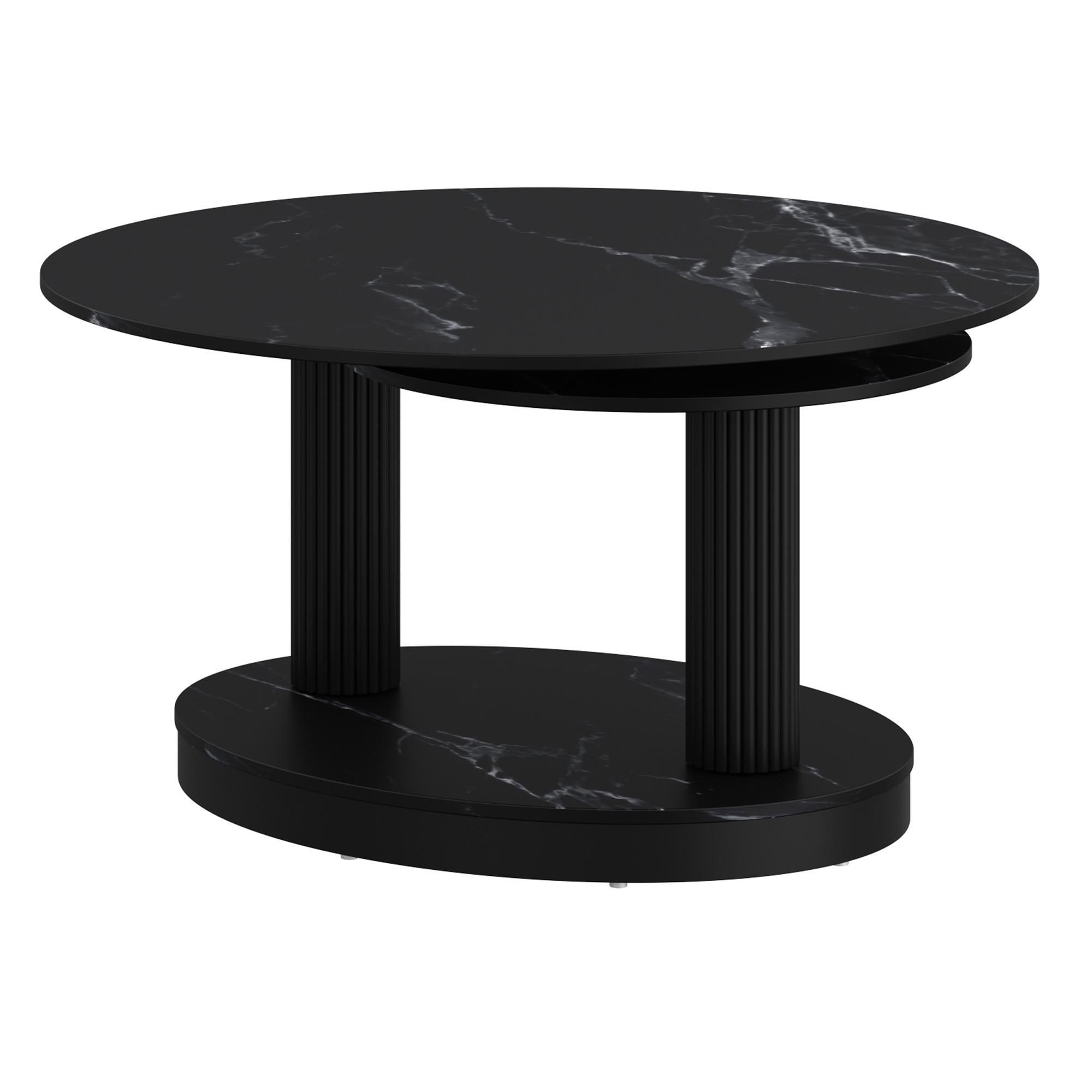 Elevate your living space with this contemporary coffee table, designed for both style and functionality. Featuring an innovative extendable top, this piece effortlessly adapts to your needs, providing extra space when you need it most. The durable sintered stone on the table tops and base combine with the reeded pedestal posts to create an exceptionally gorgeous table that will work in casual or formal living spaces.