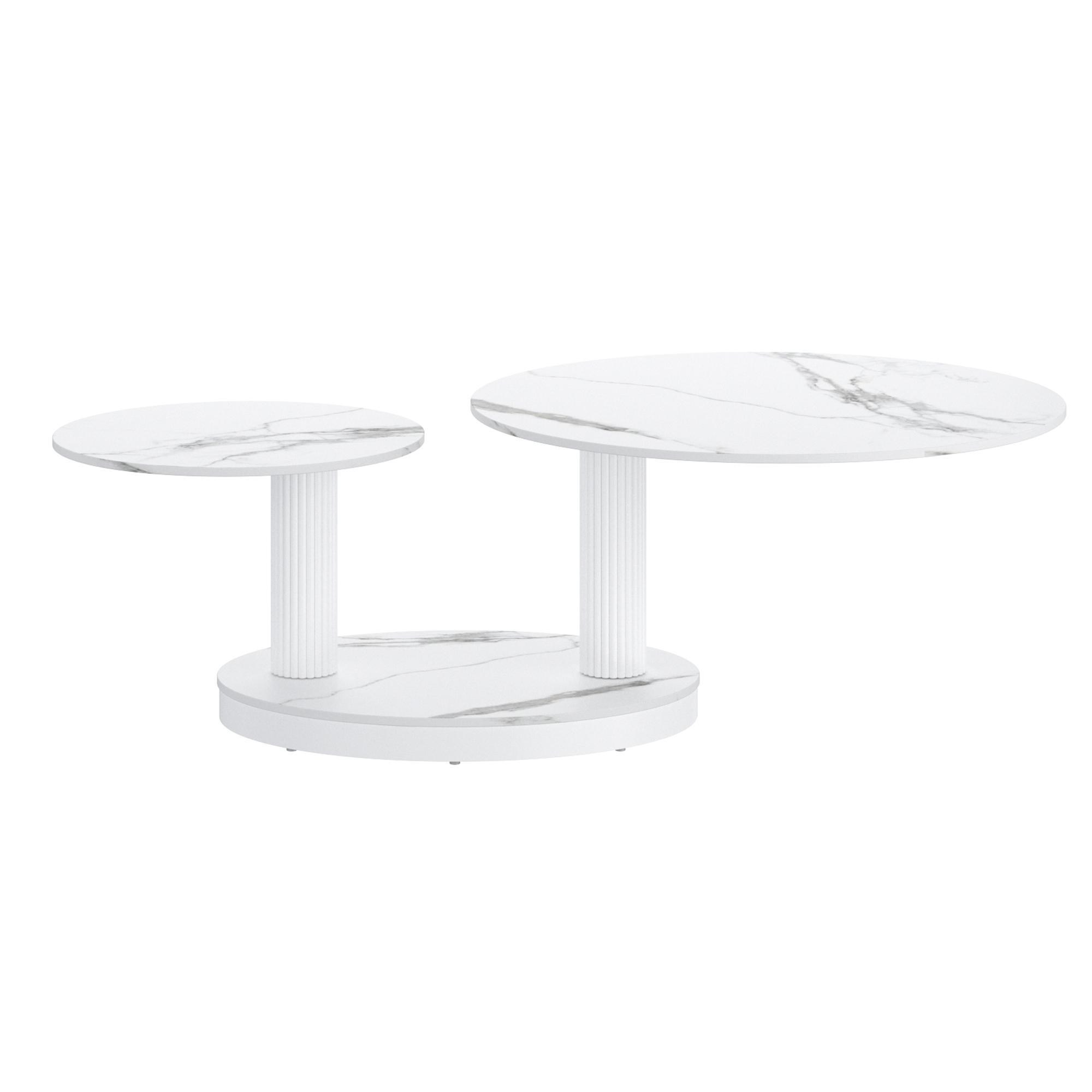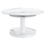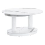 Elevate your living space with this contemporary coffee table, designed for both style and functionality. Featuring an innovative extendable top, this piece effortlessly adapts to your needs, providing extra space when you need it most. The durable sintered stone on the table tops and base combine with the reeded pedestal posts to create an exceptionally gorgeous table that will work in casual or formal living spaces.