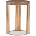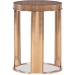 - Finish: Light Caramel finish featured on split-heart and quartered walnut veneers on the top. Metal uprights and base featured in plated Sunlit Bronze metal finish.