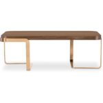 - Finish: Light Caramel finish featured on split-heart and quartered walnut veneers. Metal base is featured in plated Sunlit Bronze metal finish.