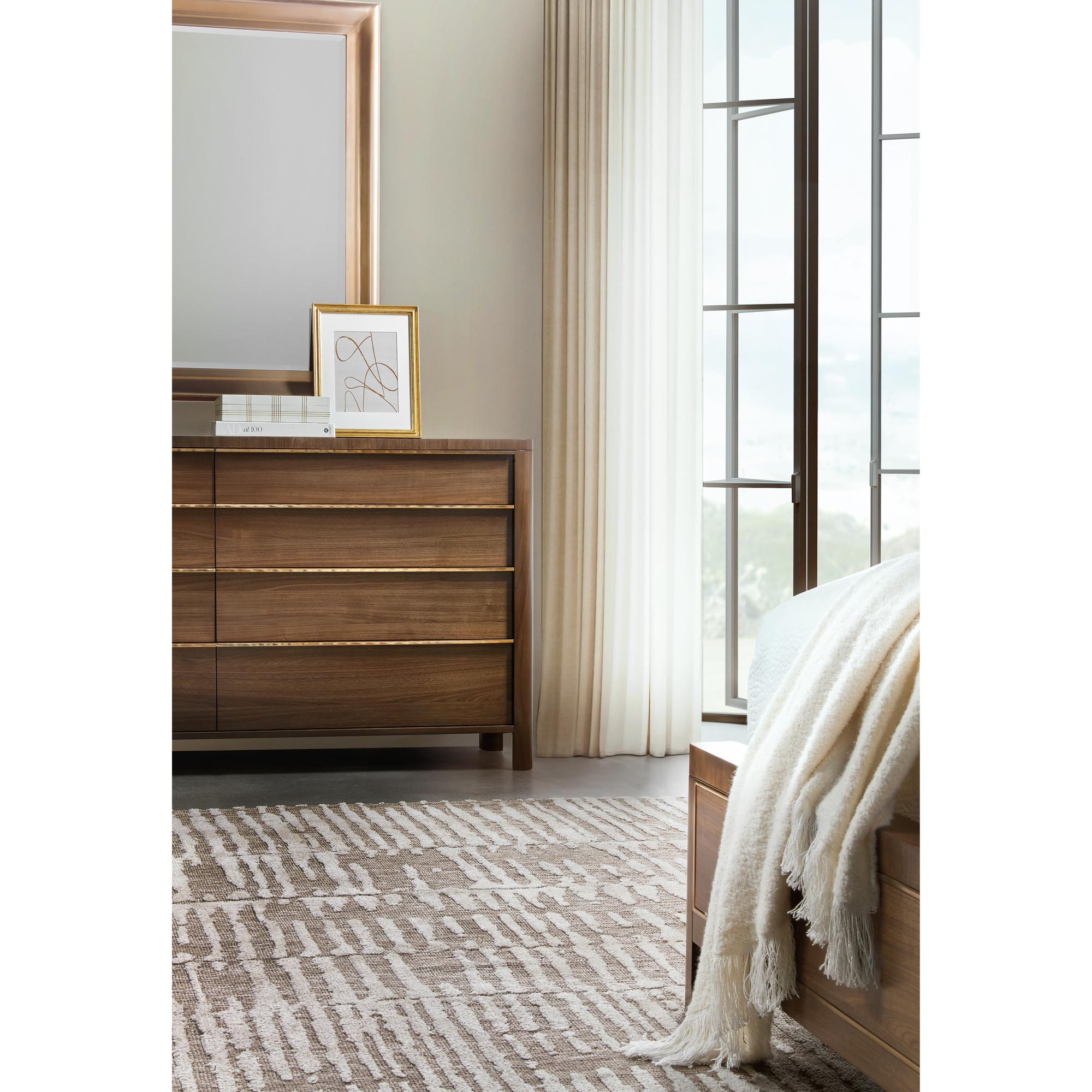 Finish: Light Caramel finish featured on split-heart and quartered walnut veneers. Hardware featured in plated Sunlit Bronze metal finish.