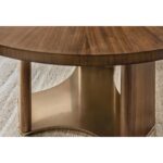 - Finish: Light Caramel finish featured on split-heart and quartered walnut veneers. Metal base featured in plated Sunlit Bronze metal finish.