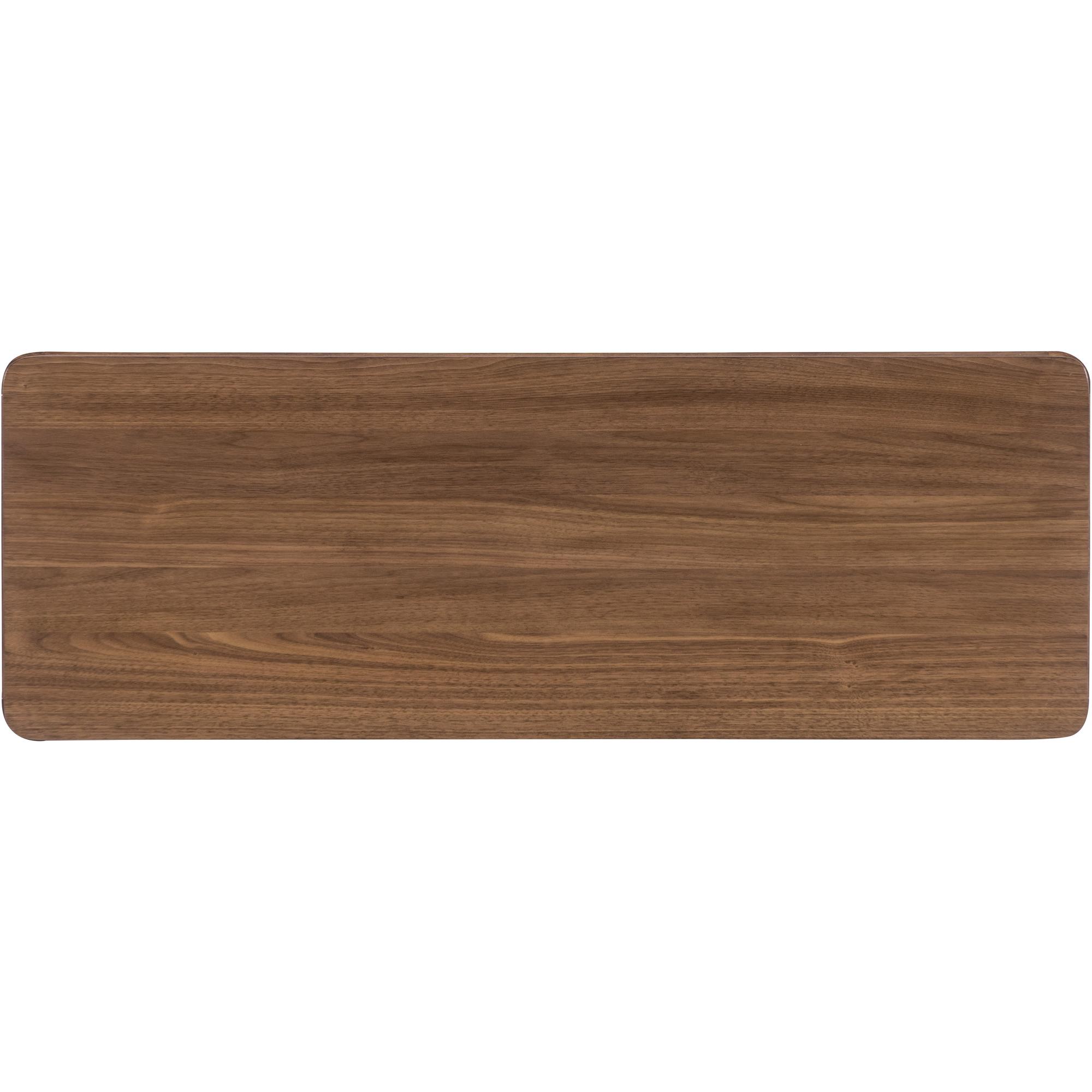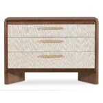 Finish: Light Caramel finish featured on split-heart and quartered walnut veneers. Hardware featured in plated Sunlit Bronze metal finish. Grass-cloth drawer fronts with beige coloring.