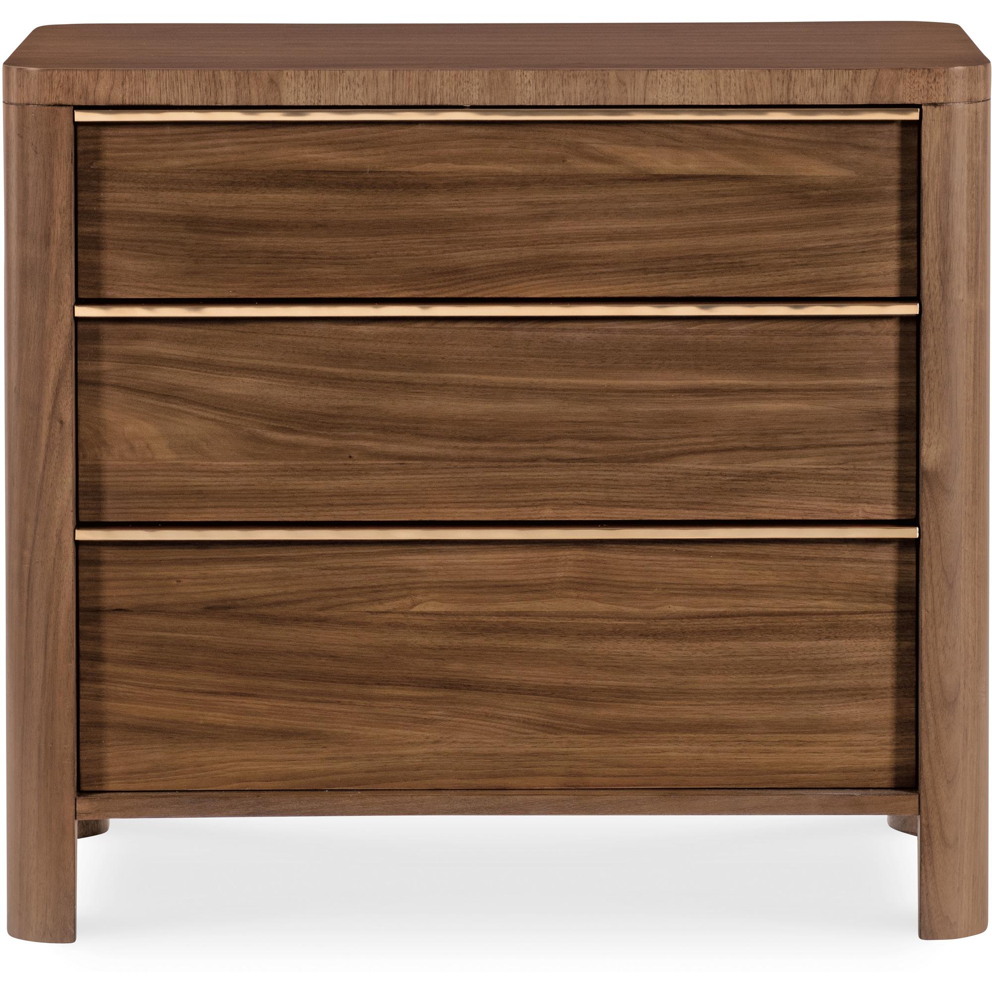 - Finish: Light Caramel finish featured on split-heart and quartered walnut veneers. Hardware featured in plated Sunlit Bronze metal finish.