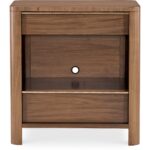 - Finish: Light Caramel finish featured on split-heart and quartered walnut veneers. Hardware featured in plated Sunlit Bronze metal finish.