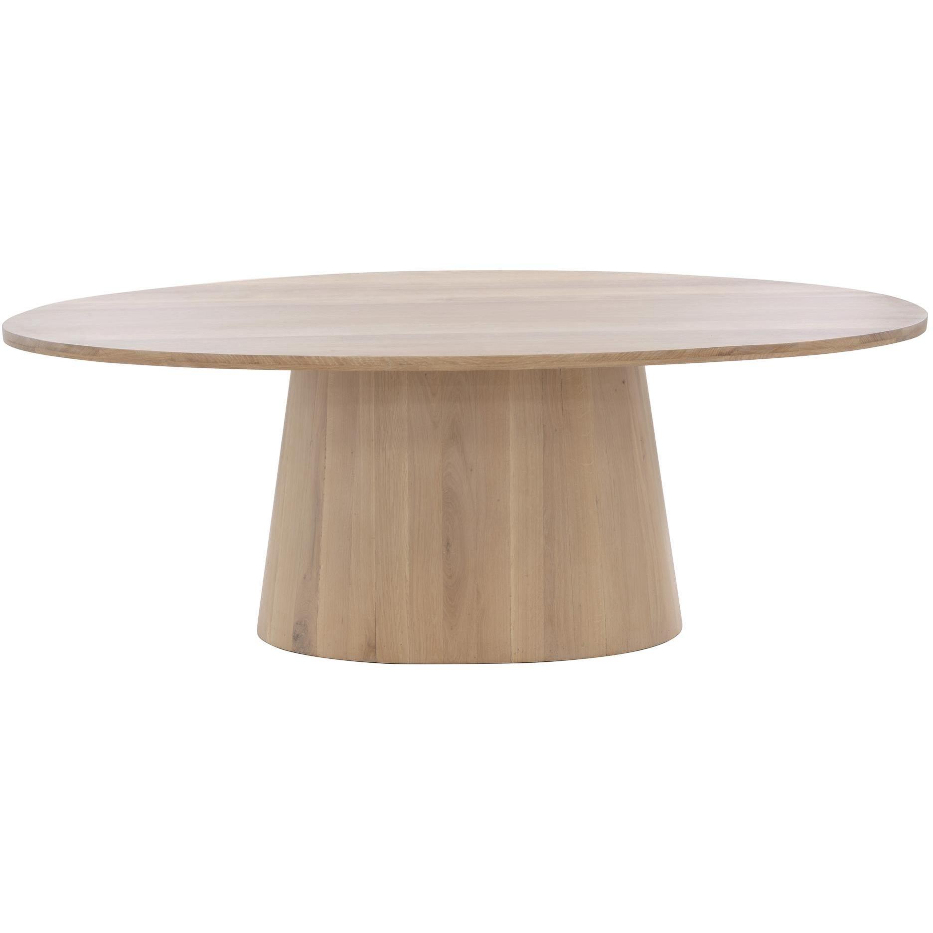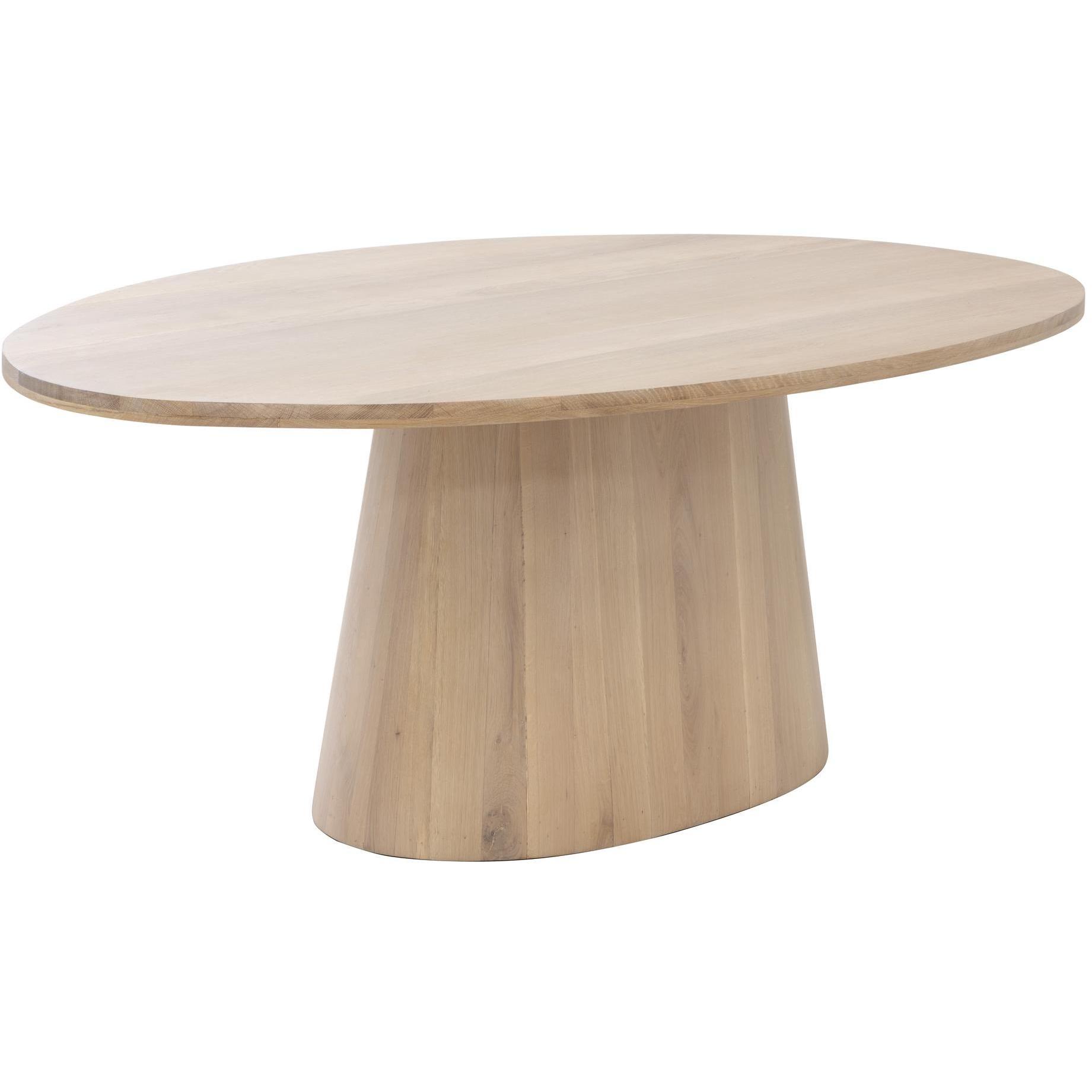 A classic oval dining table that takes inspiration from modern mid-century design for a tasteful addition to any dining space. Made from natural solid oak wood with a whitewash finish. As wood is an organic, porous material, these pieces will contain natural variation of texture and may also exhibit fine indentations and cracks. Wood pieces will also display a disparity of colour and grain, and visible knots and burls that add to the character of each piece. Made in India. With refined craftsmanship, this design was brought to life by skilled local artisans. Due to the nature of handcraftsmanship, unique imperfections such as fissures, markings and variations in colour and shape are welcomed and appreciated characteristics for a truly one-of-a-kind piece.