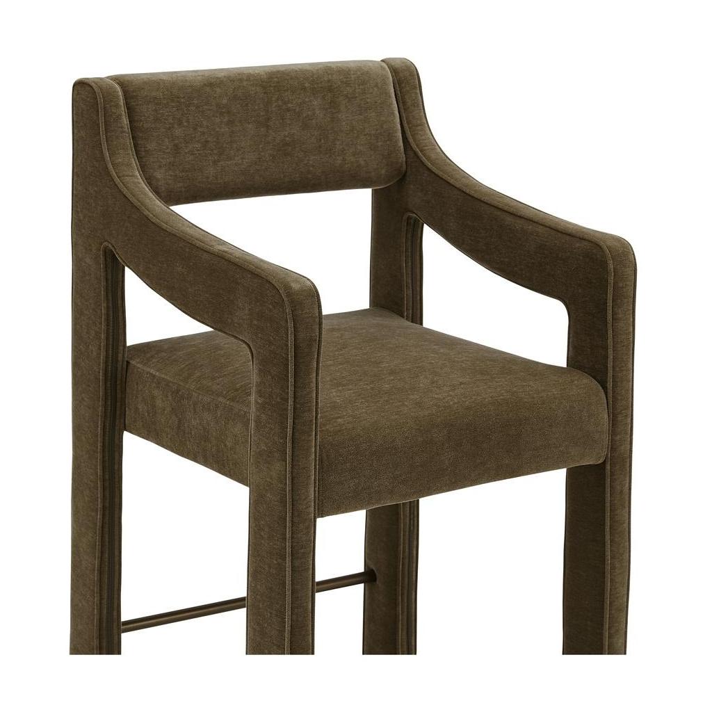 Pull up—Elise makes the everyday seat feel considered. Softly sloped arms and a single, continuous iron frame give it that modern-archetype ease, without the hard edges. It reads refined from every angle, even on busy days. Wrapped in Cedar-Green polyester with neat piping, the padded seat and back invite lingering breakfasts and quick emails alike. Foam and plywood keep the sit supportive, while metal stretchers steady things underfoot. Best part: it arrives ready to work.