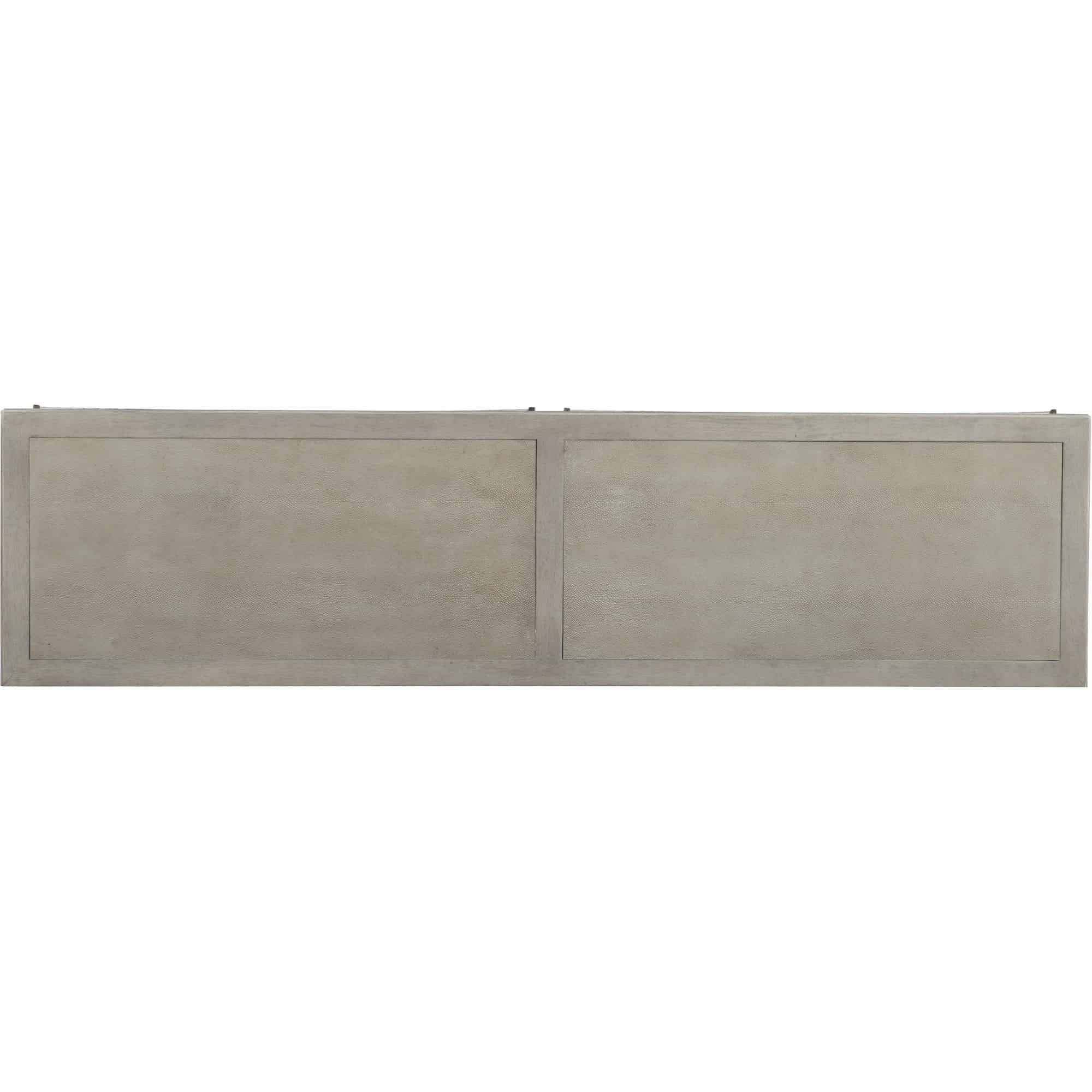 - Finish: A serene gray beige finish applied to lightly sand-blasted walnut veneer for an organic and textured look. Distressing includes wire brushing.