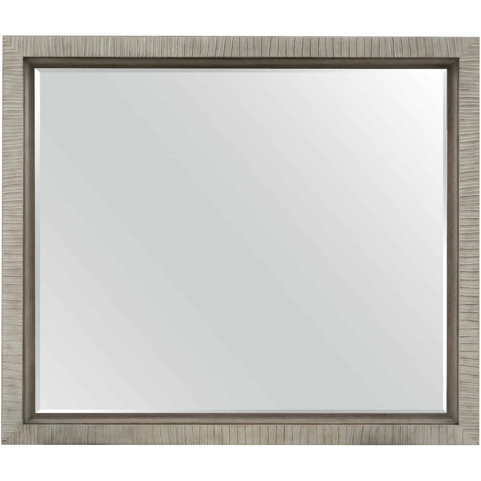 Finish: A serene gray beige finish applied to lightly sand-blasted walnut veneer for an organic and textured look. Champagne silver finish on the metal elements and hardware. Custom-designed knob hardware in a champagne silver finish. Distressing includes wire brushing.